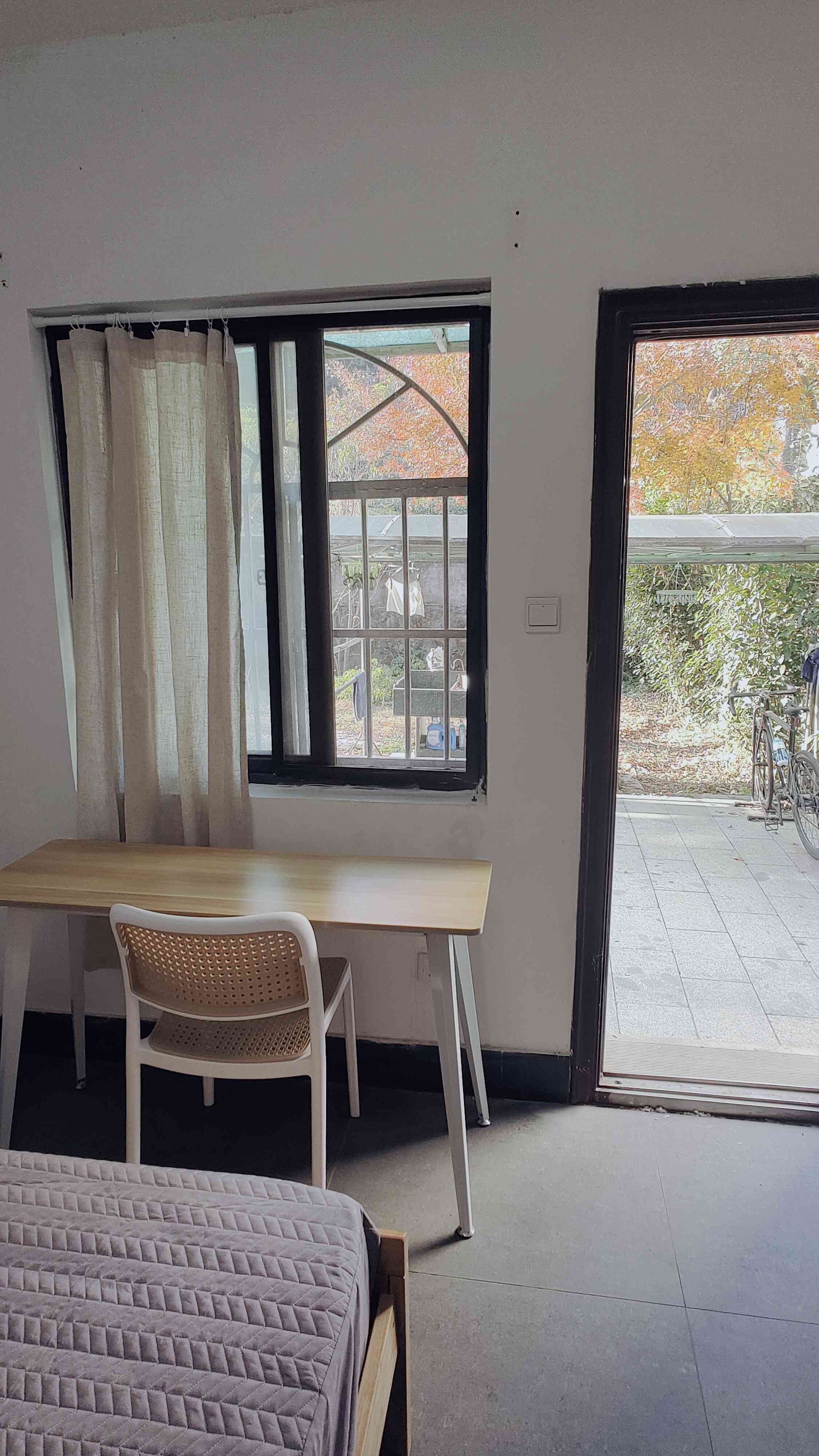 自家园景房出租。 背靠茶园,地理位置优渥。 房间在一楼,面朝西北,自带山景,出门就是后院。 !!!房东直租,图片均为实拍!!! 东邻浙大玉泉校区的西南2门。 西南方向往下500m,就是网红打卡地【青芝坞】主街。 没有厨房,喜欢宅家做饭的人士请知悉:) 不过关于觅食,丝毫不用担心。 半径1km内,网红餐厅不下10家,各种风味和价位的餐饮店无数。还有各款浙大食堂任君挑选。不愿出门的,这个区位在饿了吗、美团订餐也很方便。 我们欢迎喜爱宁静简朴和品质生活的有缘人入住。 !三个月起租!长租和学生,价格更优!