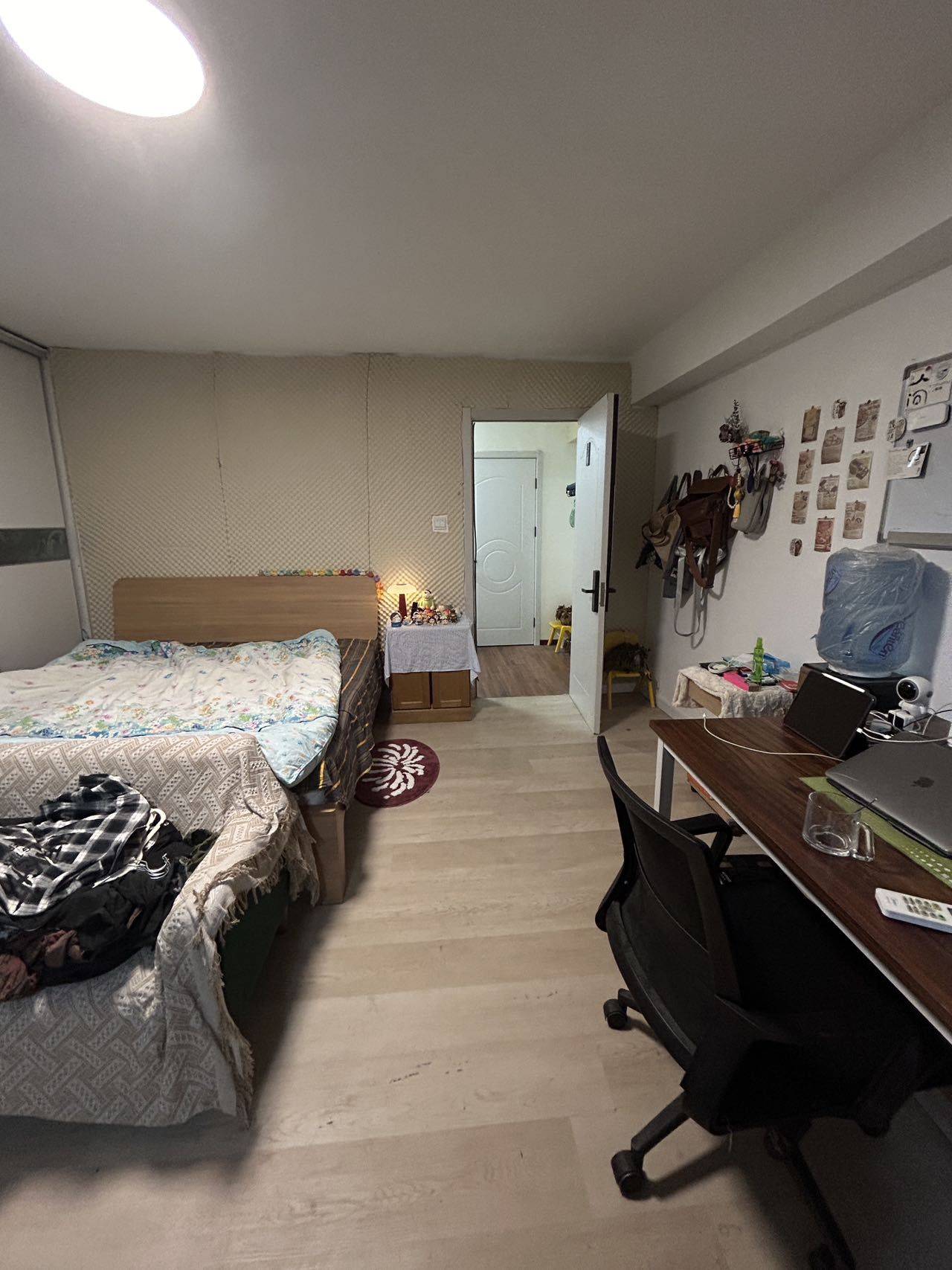 房子是合租在北京四惠,离地铁站6分钟,整个房子现在是4室,两卫生间,一个厨房,冰箱洗衣机齐全。共89平的样子然后我这个面积是最大的,有两个房间组成44平,卧室非常大,桌子沙发这些都是齐全的,包括饮水机,门口支衣架都会留下。目前室友情况是一男一女各一间,还有一个是空房,平时是没有交集,大部分沟通都是通过微信群。