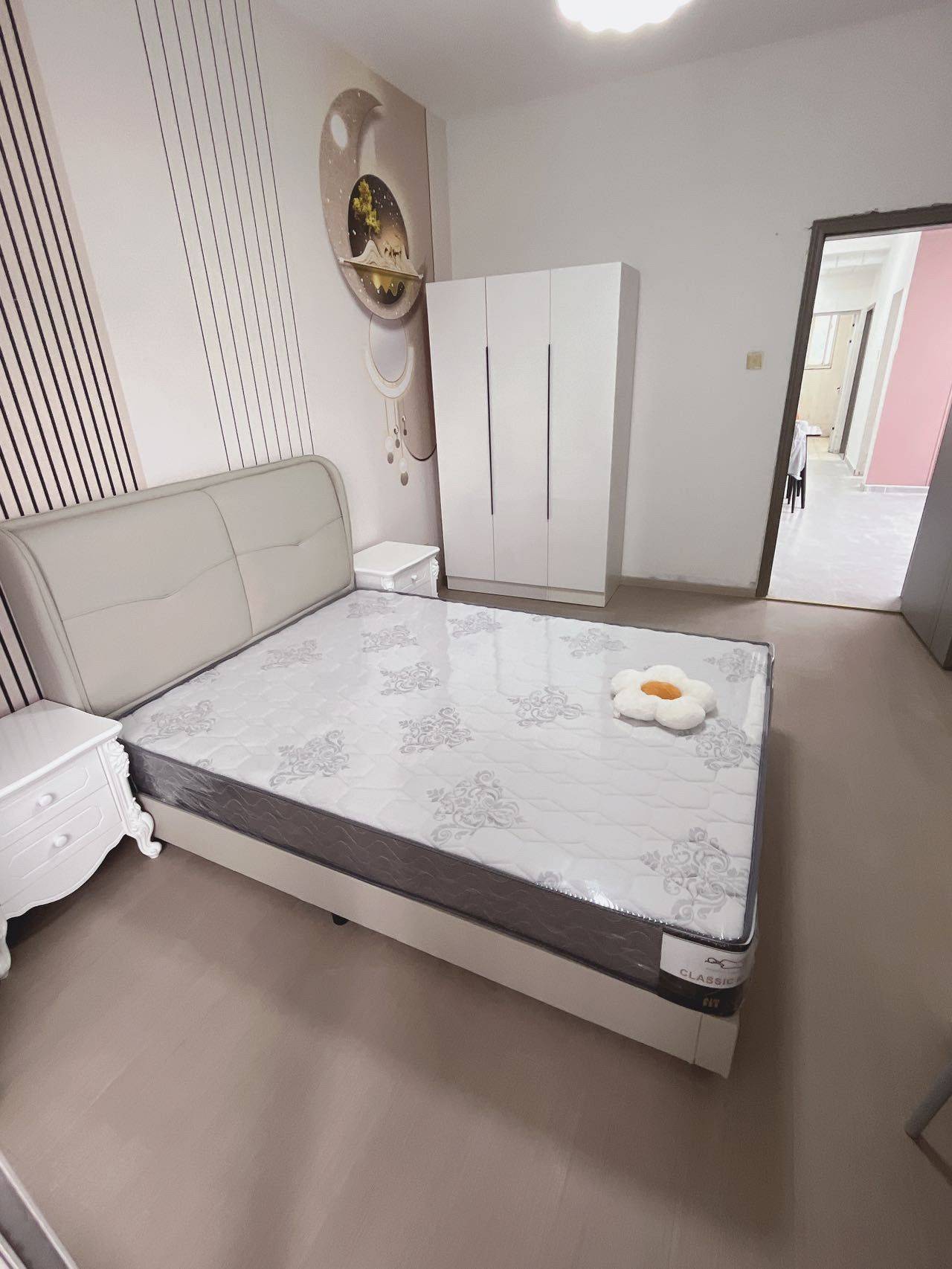 精装修 两个卧室很大 都是席梦思 环境很好楼下全是吃的 出行也方便