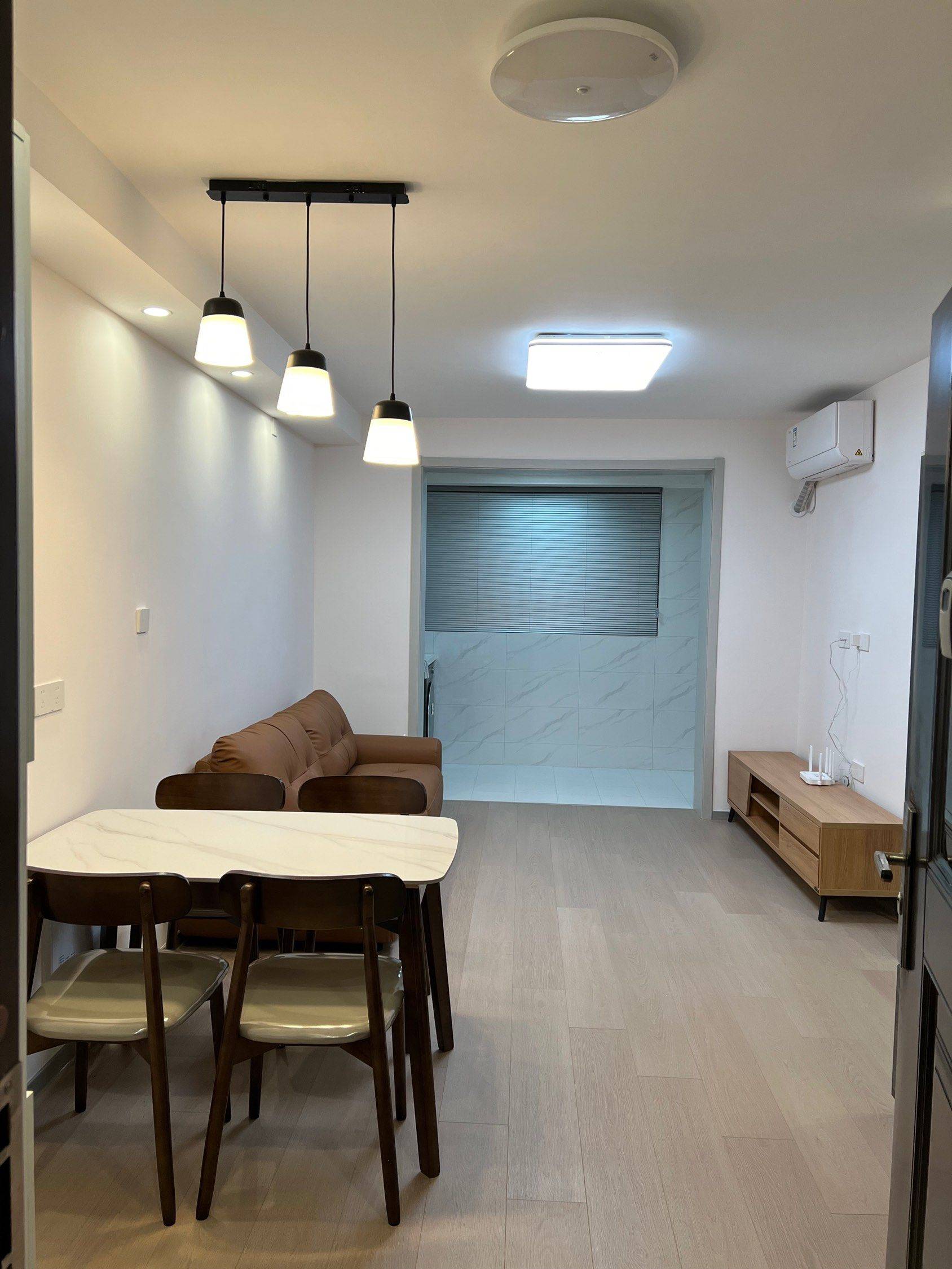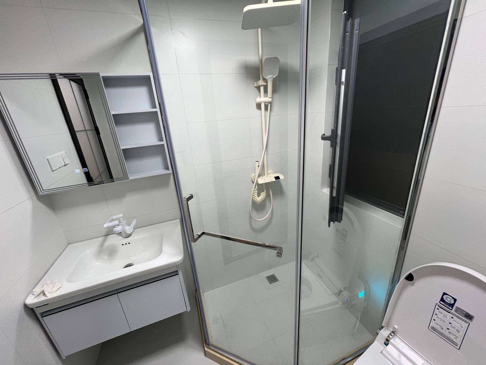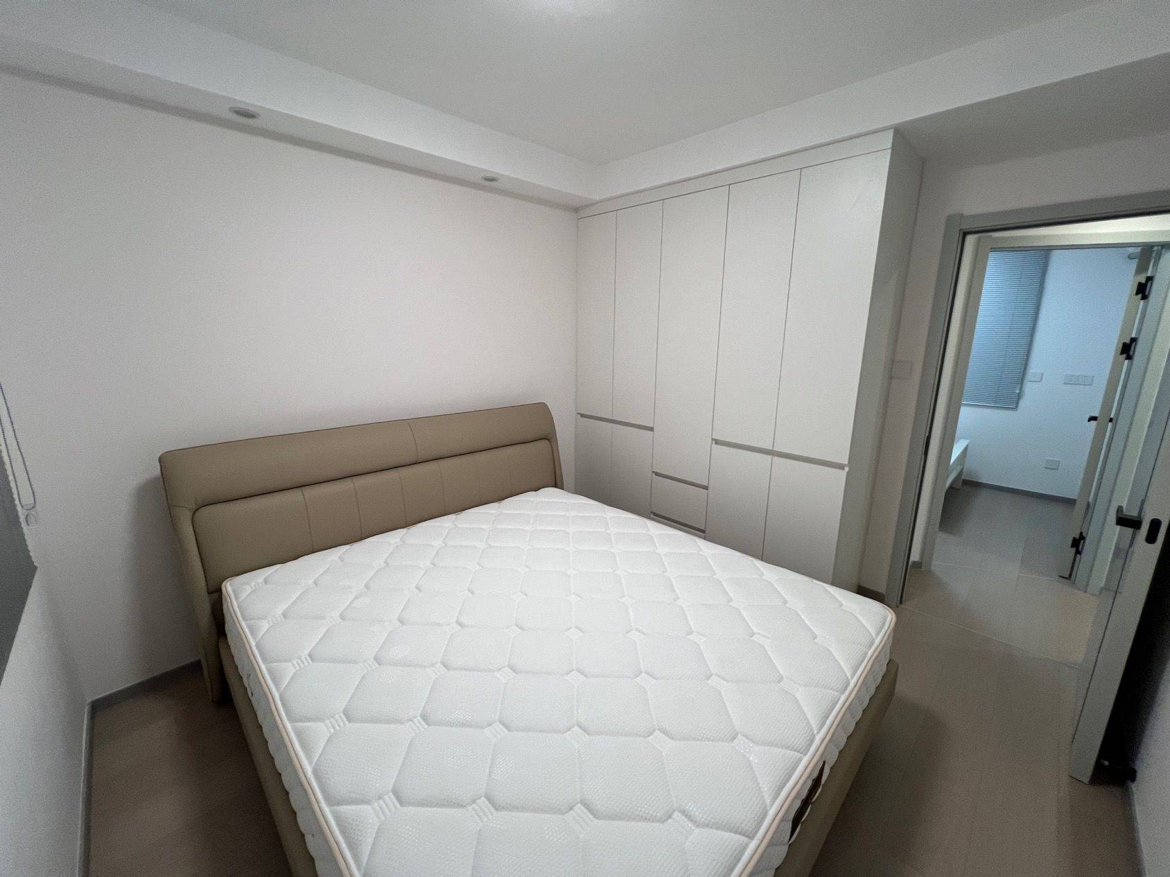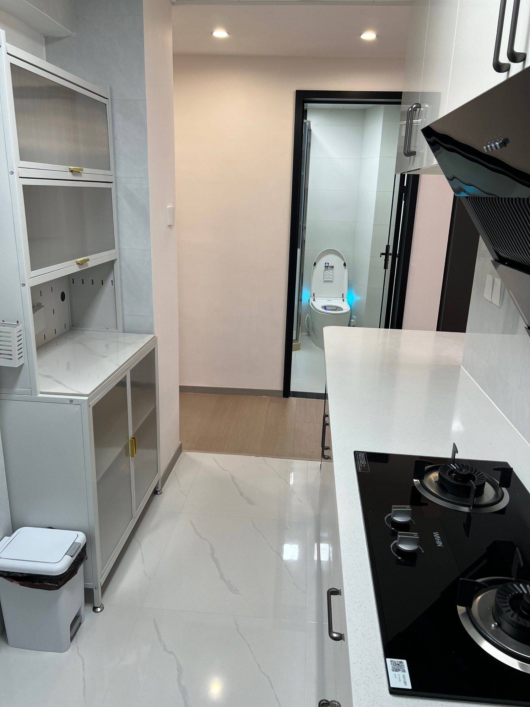 二室一厅,套内55平。科勒前置过滤器(拒绝水箱清洗问题),500M宽带+Wi-Fi6路由器,玄关2.8平迷你衣帽鞋区,7层*4双独立鞋柜,芝华仕中古风包豪斯牛皮沙发,智联10kg洗烘一体,语音控制晾衣架,532L法式冰箱,语音控制智能马桶,遥控开关客厅主灯/主卧灯,主卧芝华仕五星床垫(厚30cm),次卧穗宝椰棕抑菌床垫(厚18cm)。仅电视及微波炉是旧的(未展示),其余全新未使用。两年合约租金可降,租满两年可额外退半月租金。
