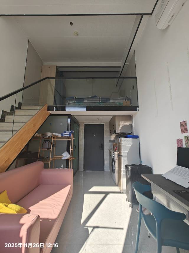 公寓直租,没有中介费。转租后和公寓直接签约,租房合同到26年4月份。原价2000一个月,个人每月补贴100,在转租的时候一次性付清。房间朝南,采光非常好。离宝安公路地铁站400米,交通方便。楼下就是超市和菜鸟驿站。loft户型面积够大。有厨房可以自己做饭。