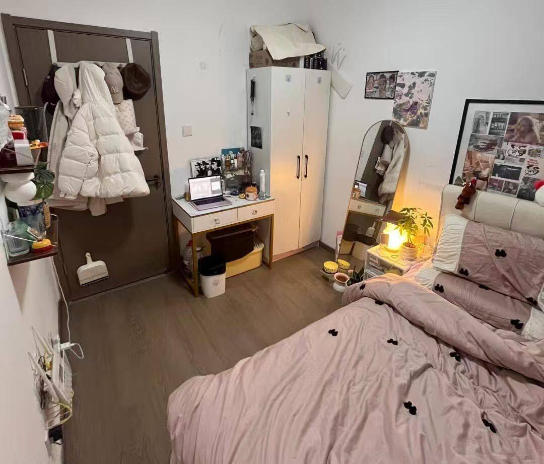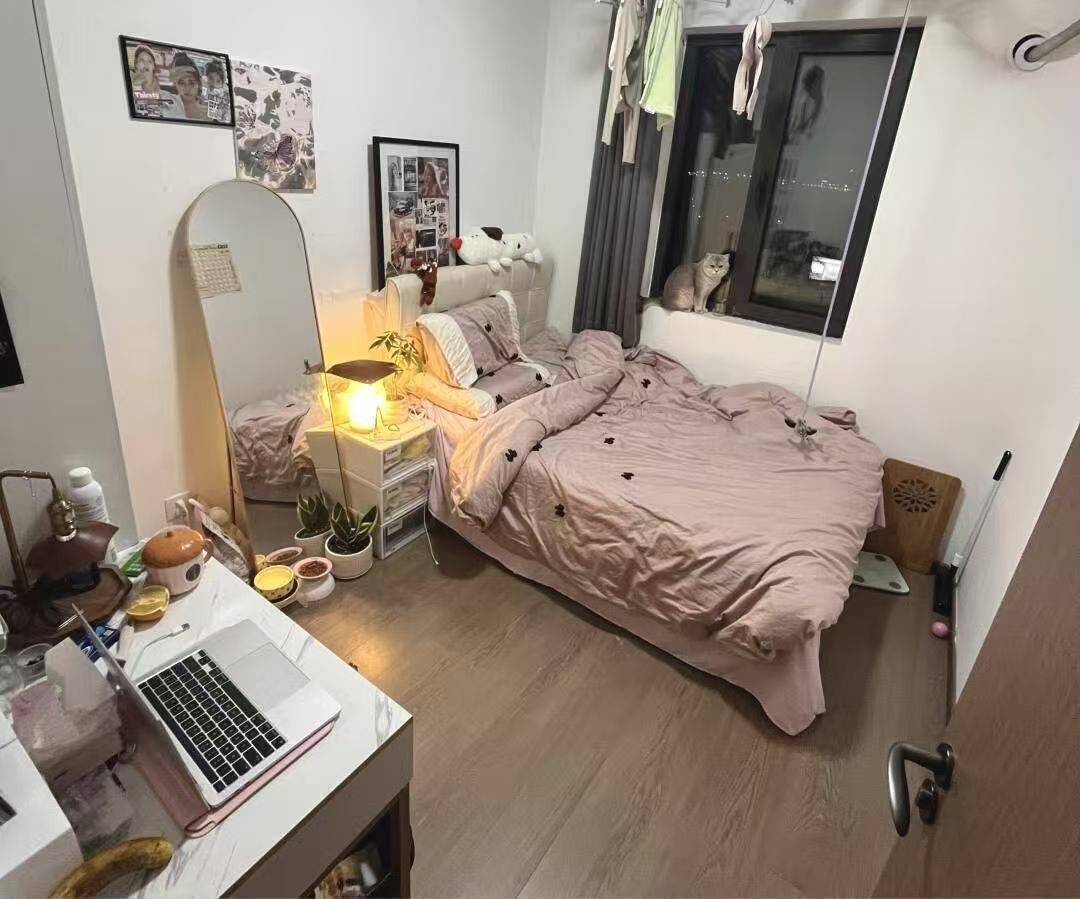 房间是个四室全女生的喔,我们这个是个次卧有一个飘窗,阳光非常的充足,房间也没有任何杂气杂八的费用 除了水电自己交以外,就是物业保洁啦,超级便宜的,一百块钱足以,房间坏了都是有人维修的啦一天一块钱超方便的啦。
