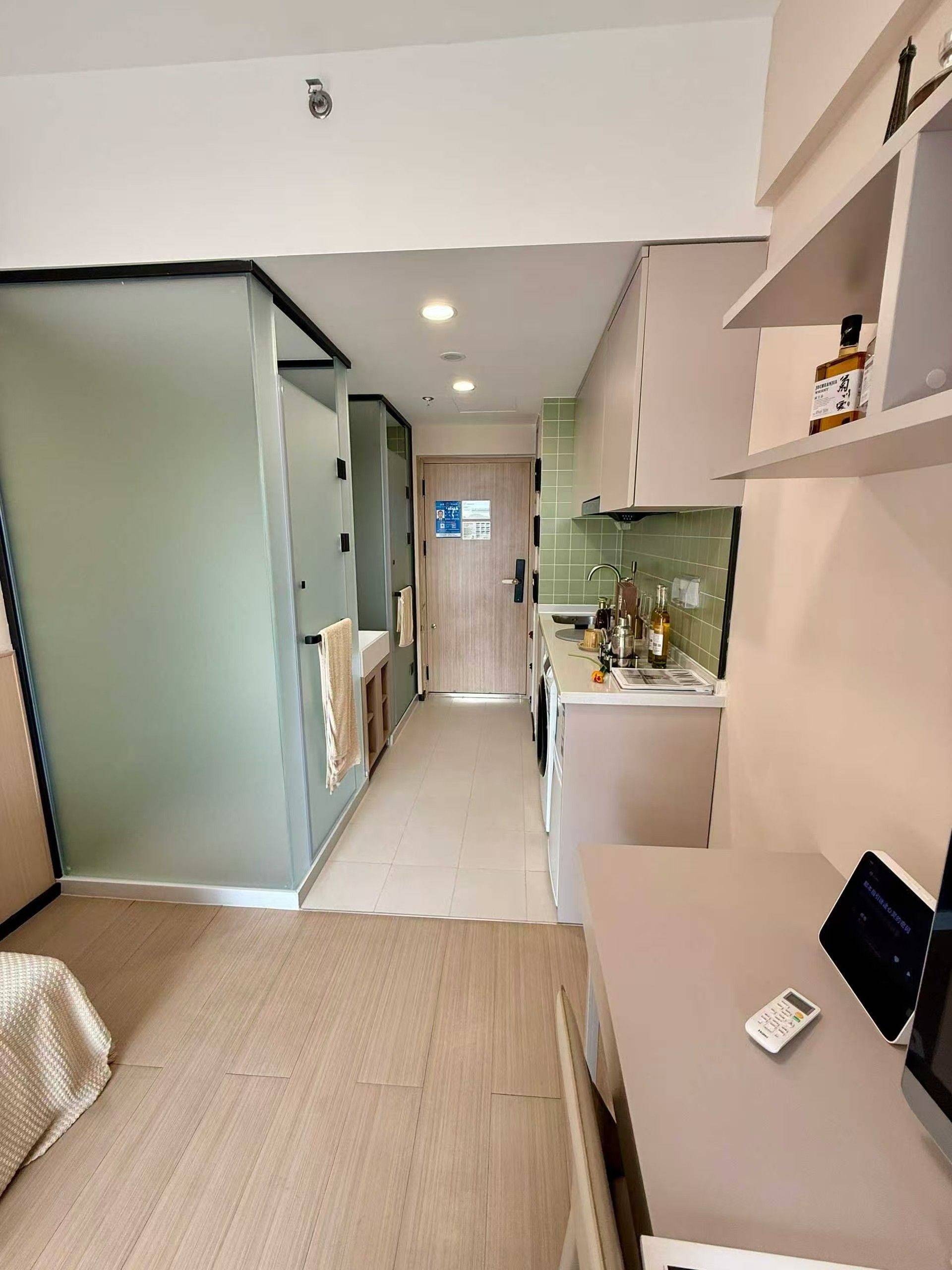 1.房子在7楼(有电梯),标准一室户,实体墙很 +双层隔音玻璃,电梯房,密码锁!朝南采光充 足!小区内设有菜鸟驿站、便利店等! 2.家电情况:热水器、沙发、冰箱、洗衣机、 床、餐桌、椅子、衣柜、鞋柜、WIFI等等! 3.民水民电、押一付一,只有房租水电没有其它 乱七八糟的费用,省心省力拎包入住! 4.地理位置:近小区门口就是小吃街和2000 平的商场,满足生活中各种需求。 5.照片实景拍摄,随时看房。