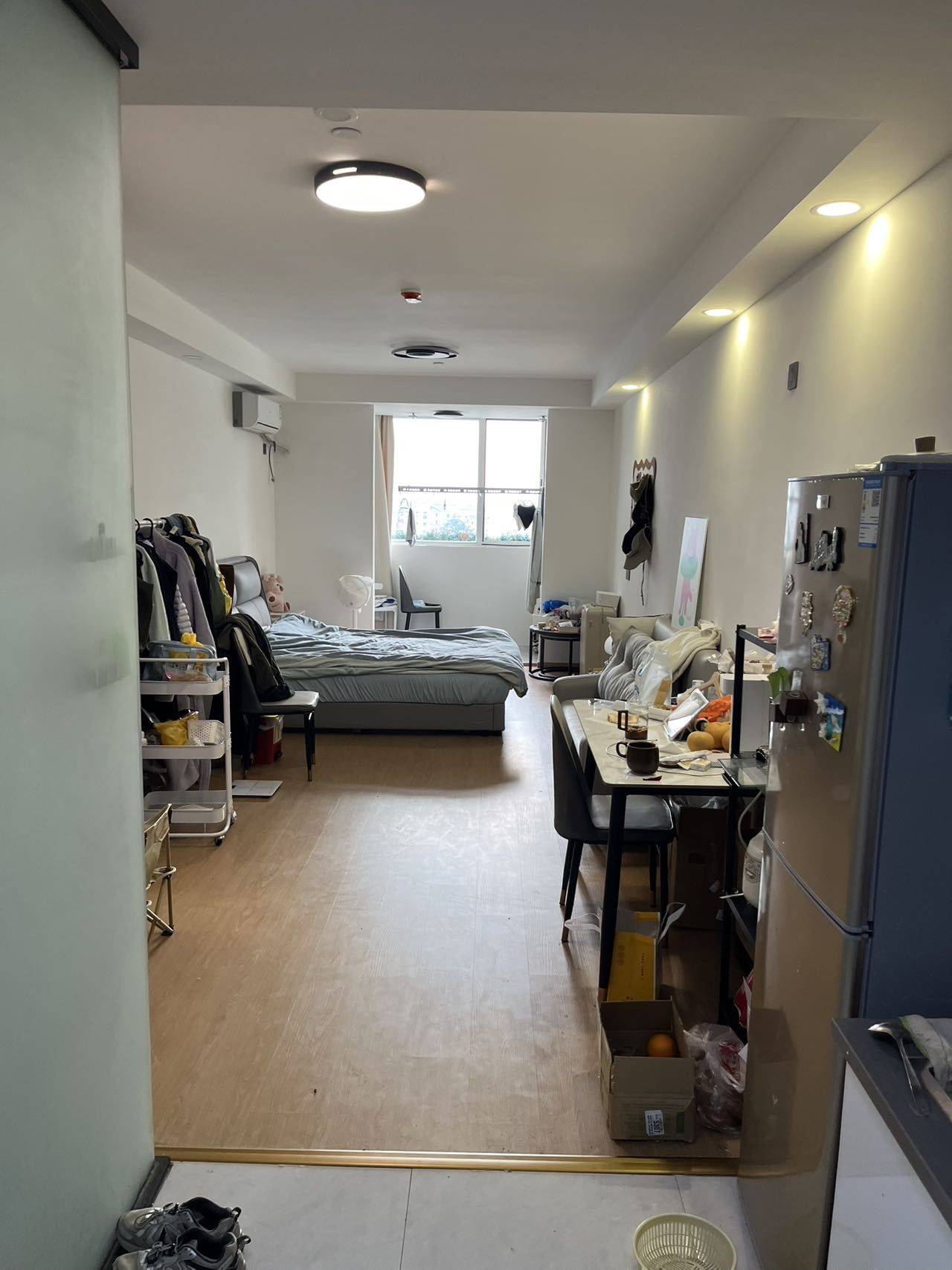 个人租客转租 房子情况: ✅精装朝南大单间,约50平方米,采光非常好,视野开阔。 ✅独立厨卫,干净整洁,家电齐全(空调,冰箱,洗衣机,热水器等)。 ✅精装修,家具包括床,衣柜,书桌,沙发,真正拎包入住。 ✅电费1元/度 ,其他费用按实际分摊,透明无杂费。 位置交通: 📍朝阳地铁站旁,步行约2分钟,通勤超级方便。 📍周边生活便利,超市,餐饮,菜市场,便利店齐全。 📍近商圈,购物娱乐都很便捷,同时公寓安静不临街。隔音好。 转租原因: 因工作调动不得不转租,个人租期是明年三月底到期,房租一季一付,可短租到三月底(不用和房东重签合同,直接将押金和租金给我),也可该季到期后(12月27日到期)与房东直接重签合同,也可明年三月底到期后合约与房东直接重签,租金1950元/月,押一付三,价格友好,适合上班族或家庭、情侣居住。 适合人群: 追求通勤方便,喜欢安静,希望生活便利的上班族。 欢迎看房,白天晚上均可预约,有意者可私信或留言联系,诚心转租,非中介!