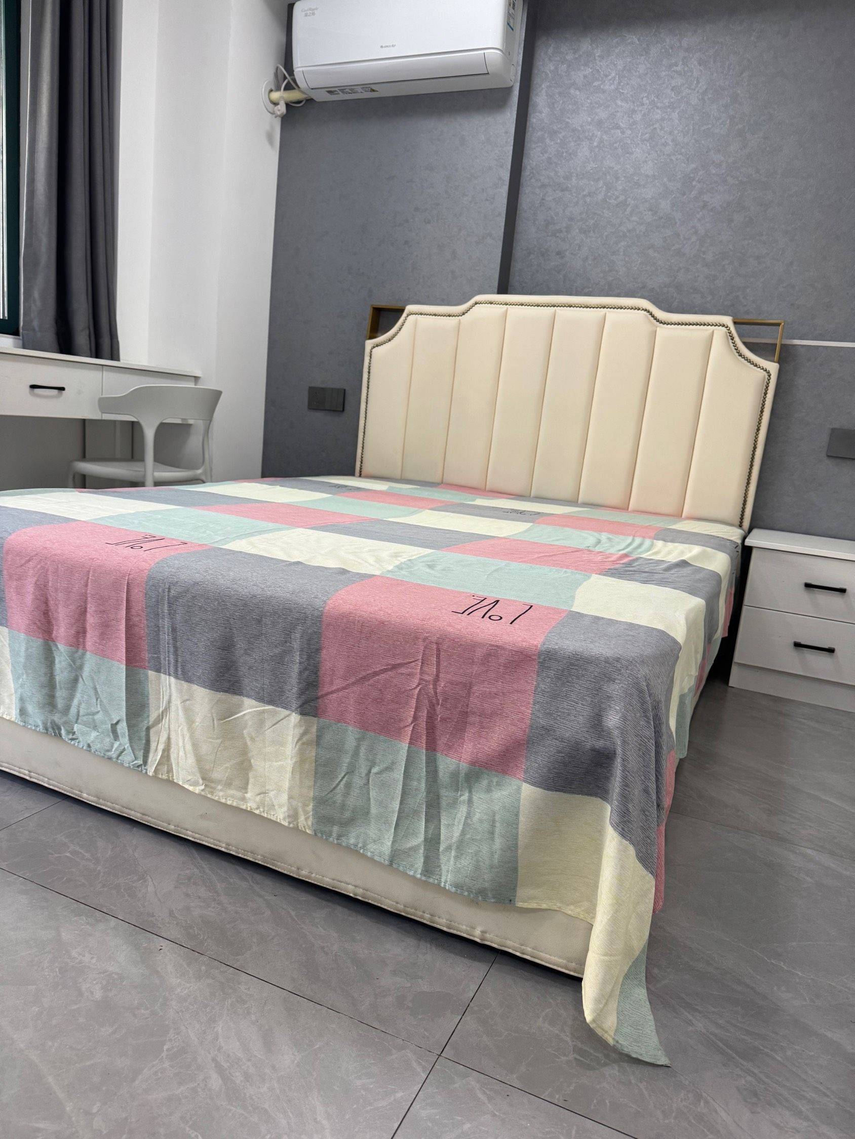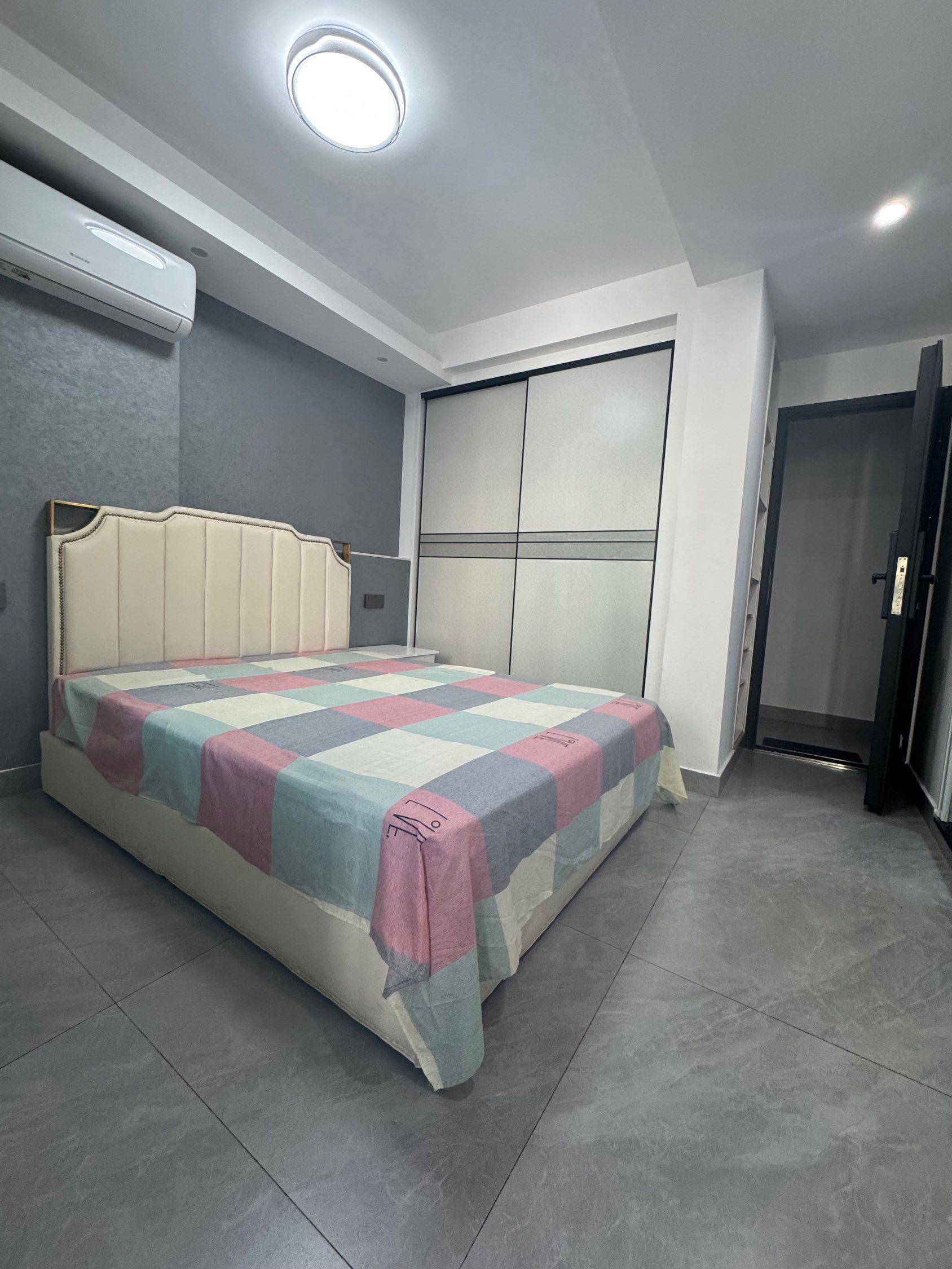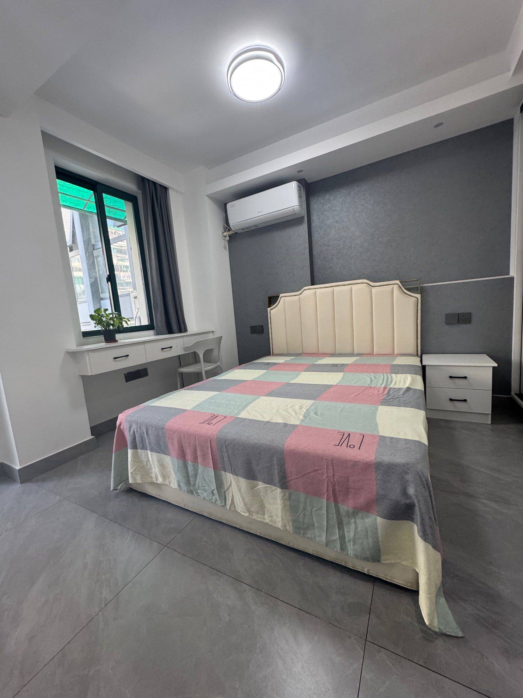 一室一卫一厨单间+小阳台、干静舒适、大床、大衣柜、10公斤大滚筒洗衣机、大冰箱、电梯房。卫生间干湿分离。