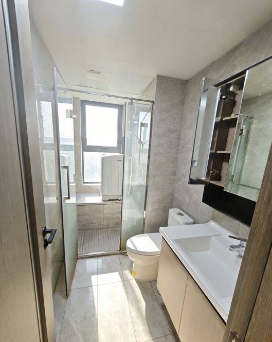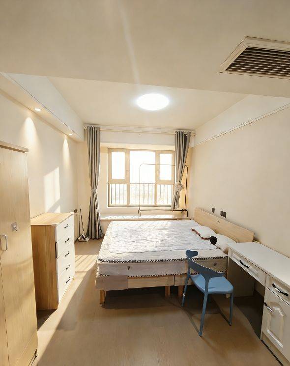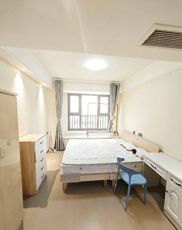 主卧独立卫生间,双人床,南北通,独立洗衣机。租金包含物业费