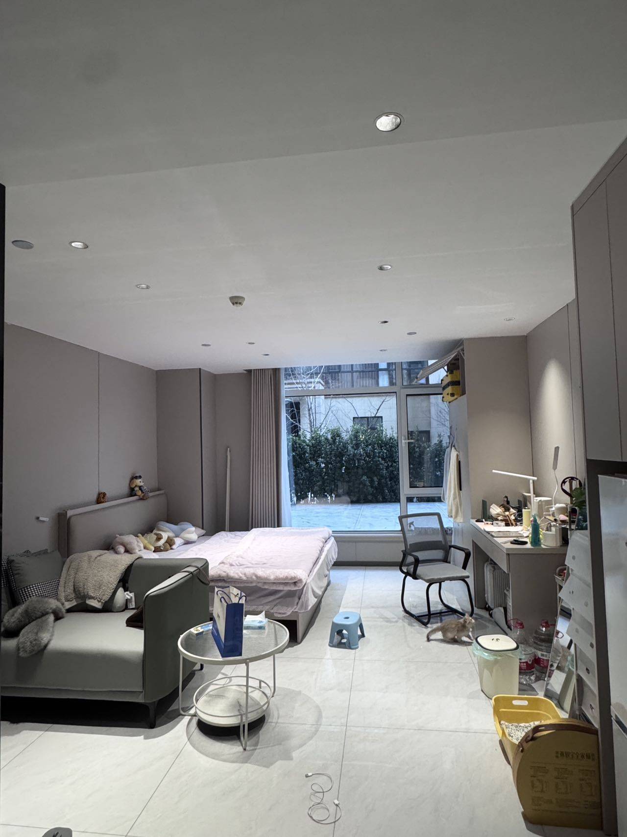 精装公寓,周边环境很好,储物空间大,有落地窗,朝南采光好,离地铁近。隔音好,邻居安静,附近是别墅区,配套设施也好,全屋设施齐全:独卫、可做饭(电磁炉)、有抽油烟机、有空调、有洗衣机、有冰箱。可养猫,不可养狗。
