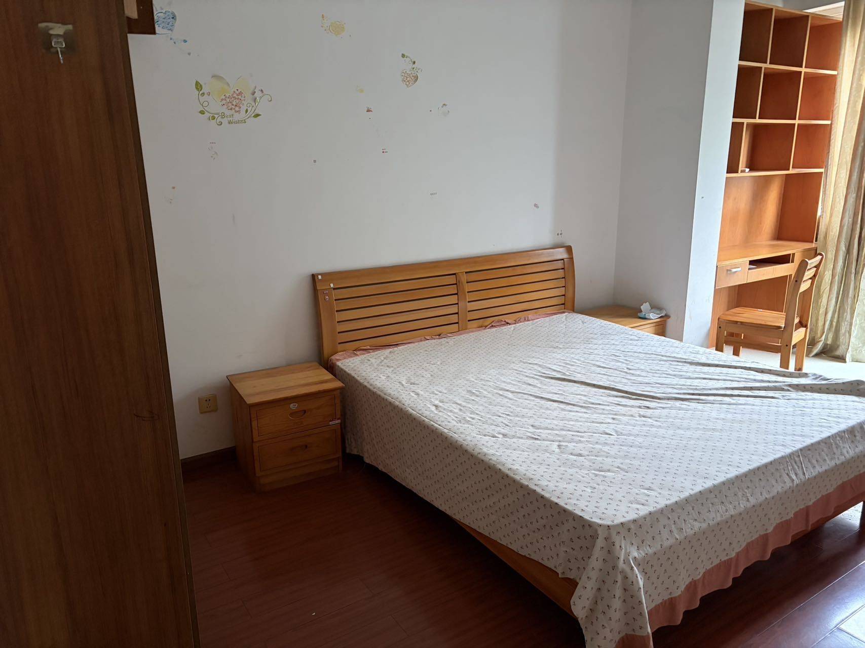 和朋友一起租的套三双卫,130多个平方,客厅很大,不是那种隔了好几个套间,设施齐全,目前这个房间是次卧(面积也挺大的),随时可入住,相当于2人共用一个卫生间,根本不用怕打挤,时间也能错开,室友作息习惯都挺好的,不会被互相打扰,小区绿化好,也很安静,基本不吵,适合备考,免费用网络,交通很方便,步行15分钟有地铁口,骑车5分钟,有需要的可以联系看房。