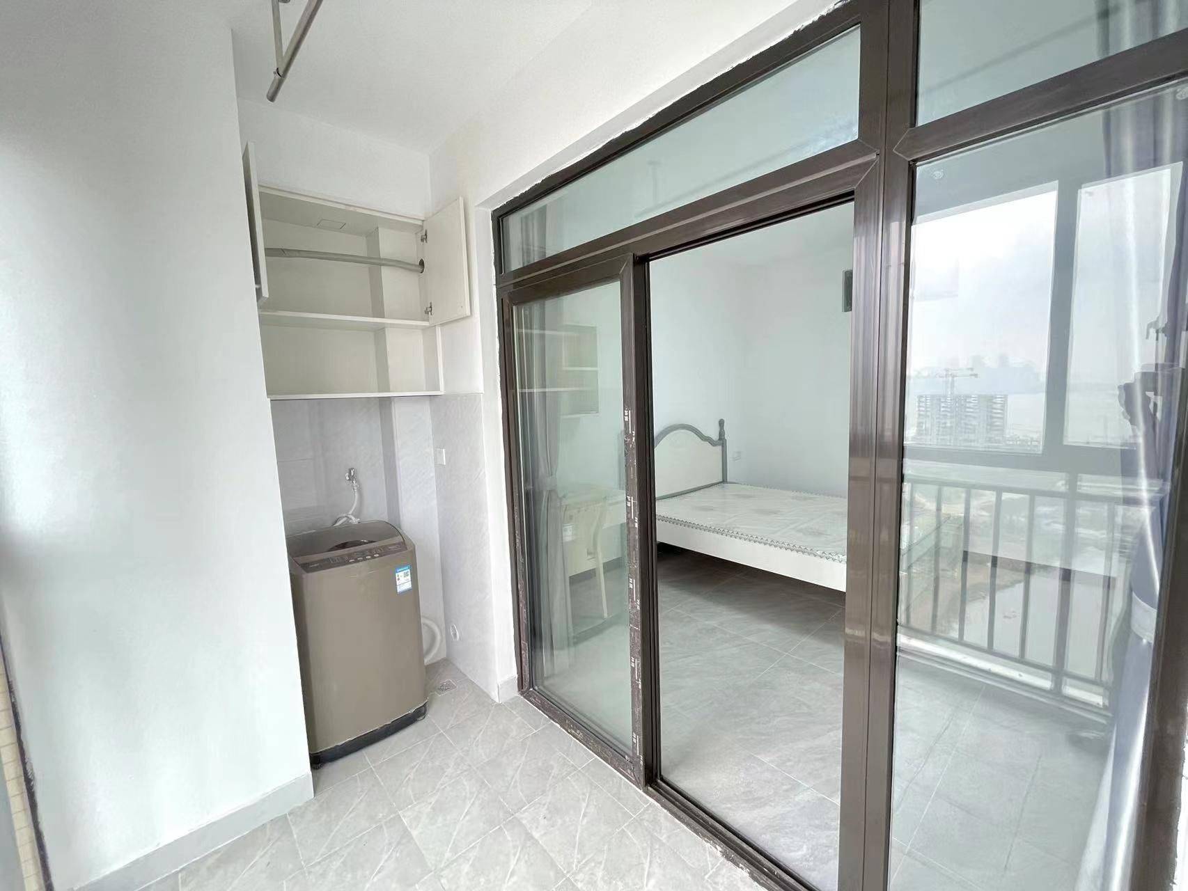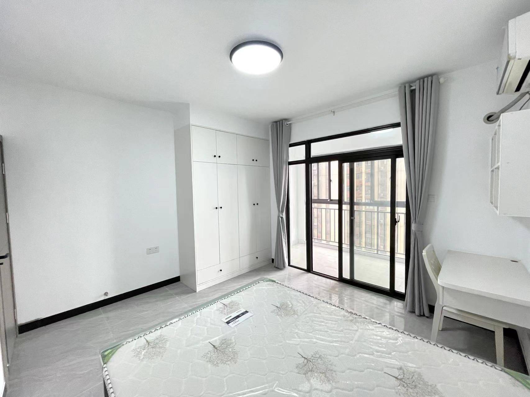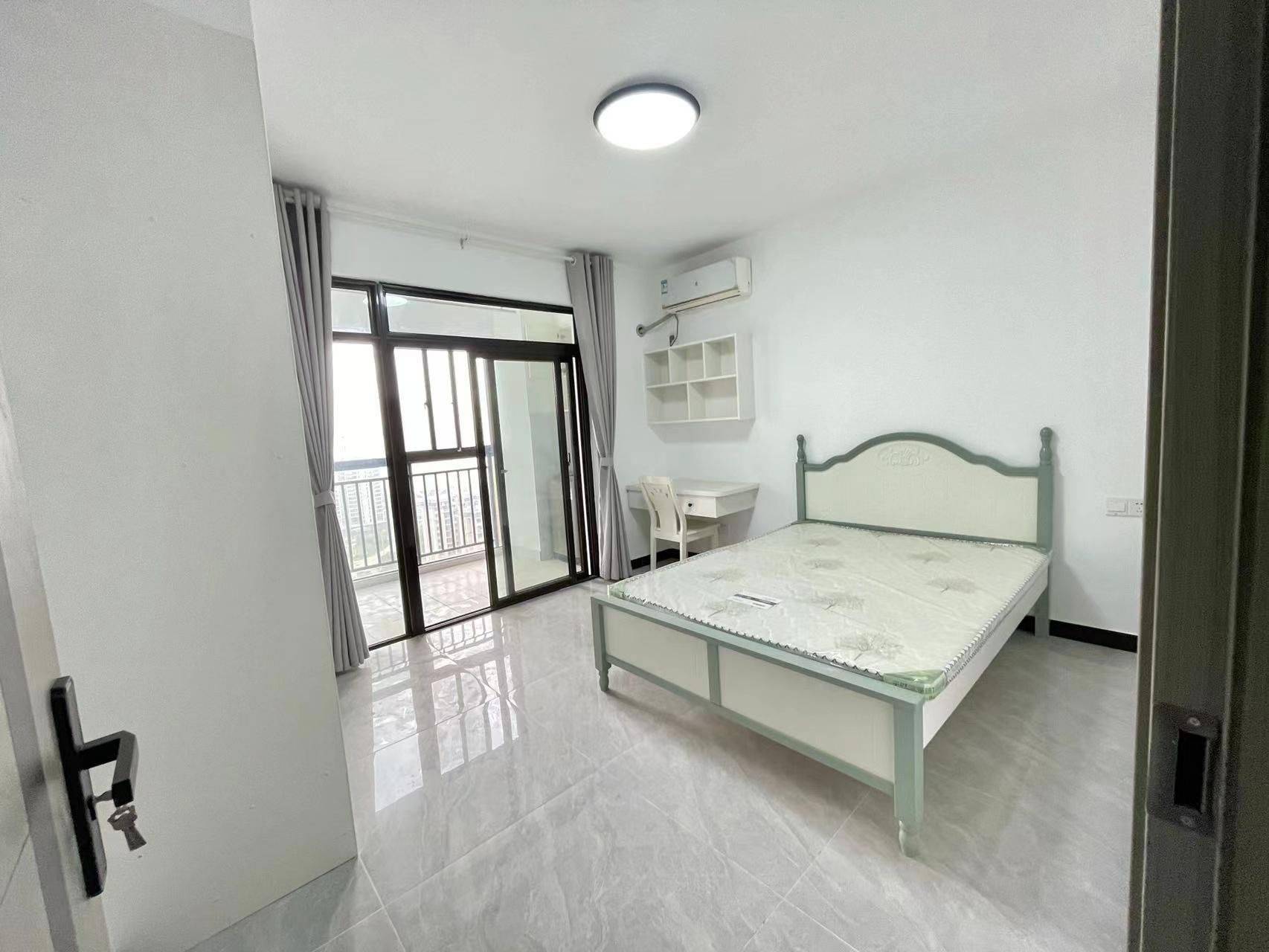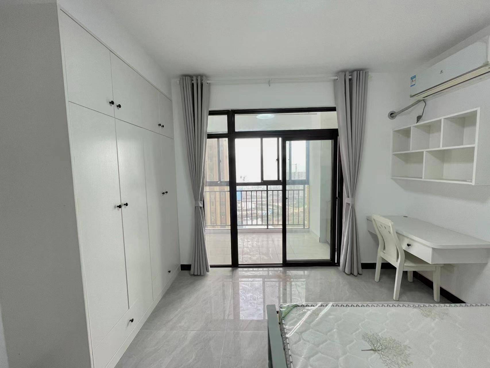 🏠 简约清新独卫主卧 | 采光通透 拎包入住 • 户型亮点:主卧独卫,空间开阔,格局方正,动静分区合理,日常起居舒适自在。 • 装修风格:现代简约风,全屋通铺亮面瓷砖,干净易打理;白墙搭配浅绿家具,清新柔和,温馨感拉满。 • 采光通风:超大阳台落地窗设计,采光面充足,白天自然光充沛,通风流畅,晾晒方便。
