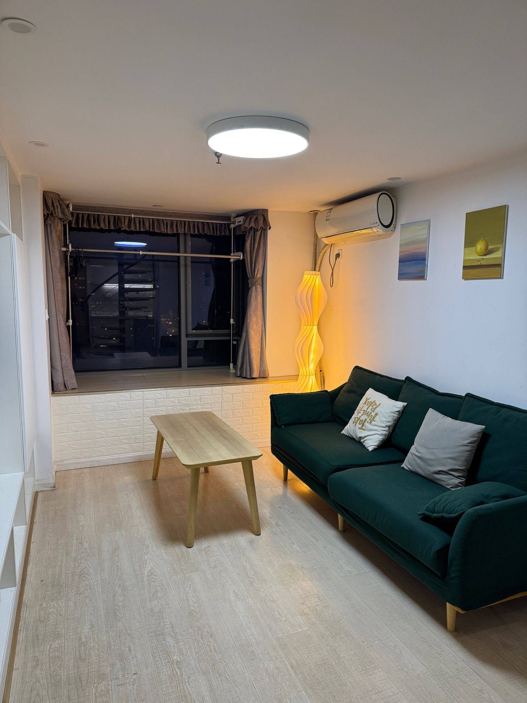 高层复式精装房出租,带电梯,采光好,家电家具齐全,卧室卫生间都有,拎包入住~ 小区环境安静,楼下就是地铁,交通很方便,适合上班族或者小家庭。个人直租无中介费!