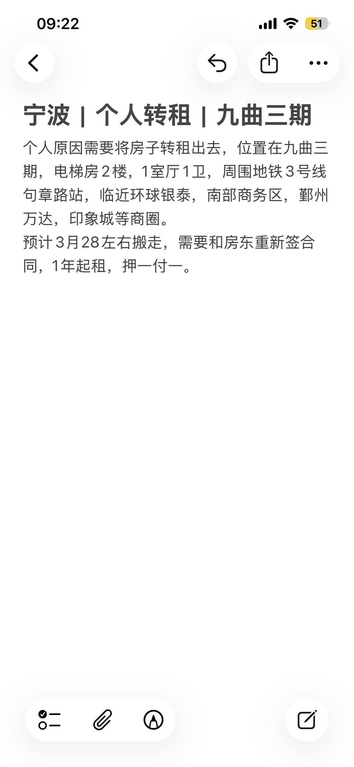 九曲三期电梯楼2楼 小区环境好绿化好 有地上地下停车位 房子2楼一室厅 独立卫生间 临近地铁3号线句章路 临近环球银泰 南部商务区 上班族首选