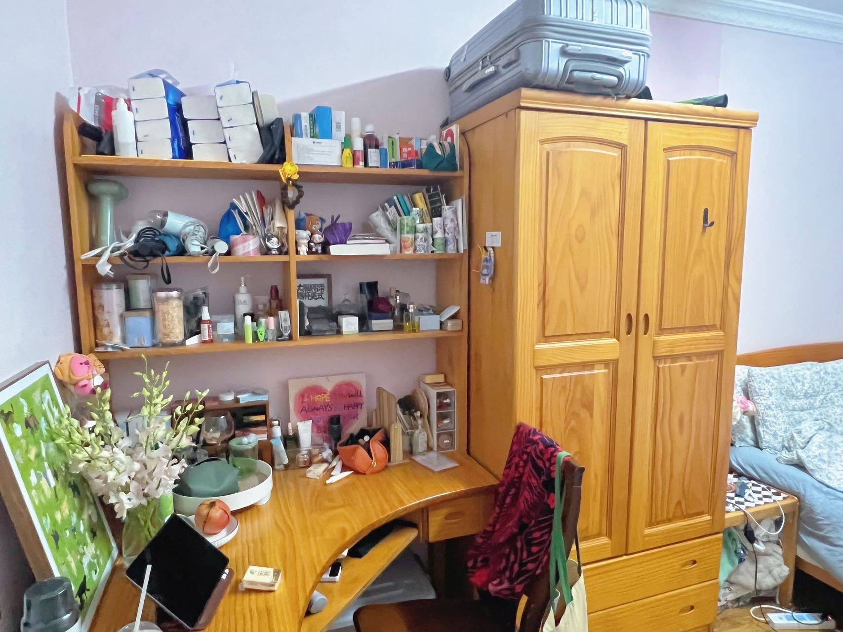 女生合租长期稳定生活规律。卧室朝南。橱柜床都是实木的。地铁大华三路和行知路中间,到地铁站步行七八分钟。附近有商超商场生活交通都很便利。小区非常安静。