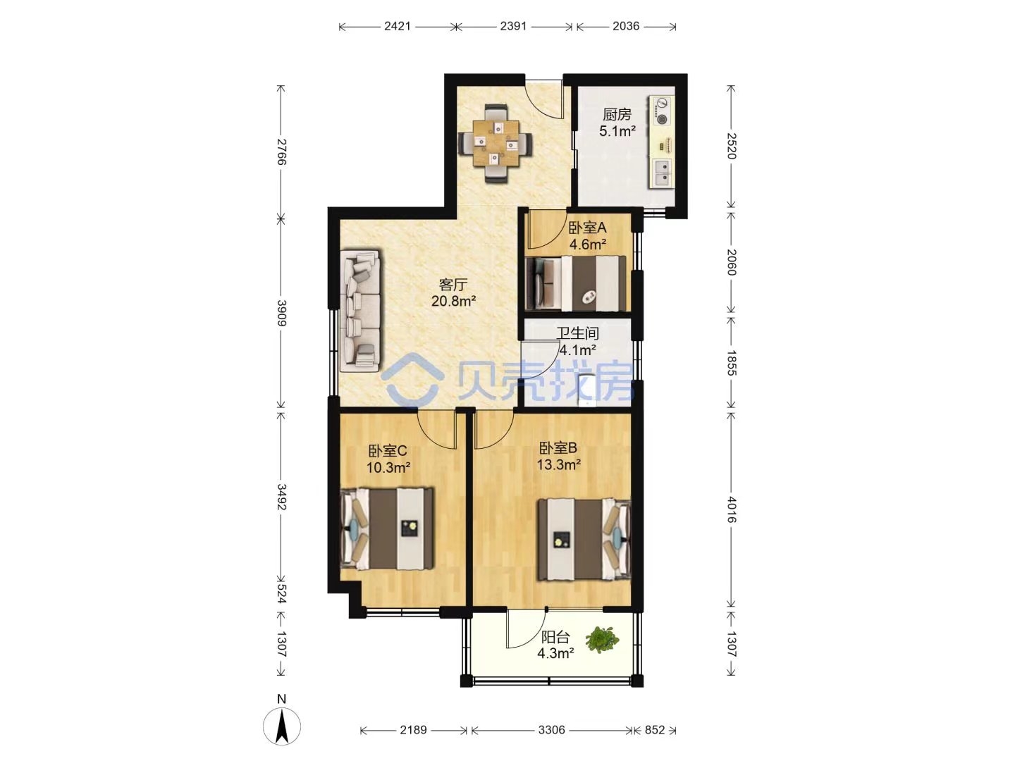 3 卧室/1 洗手间