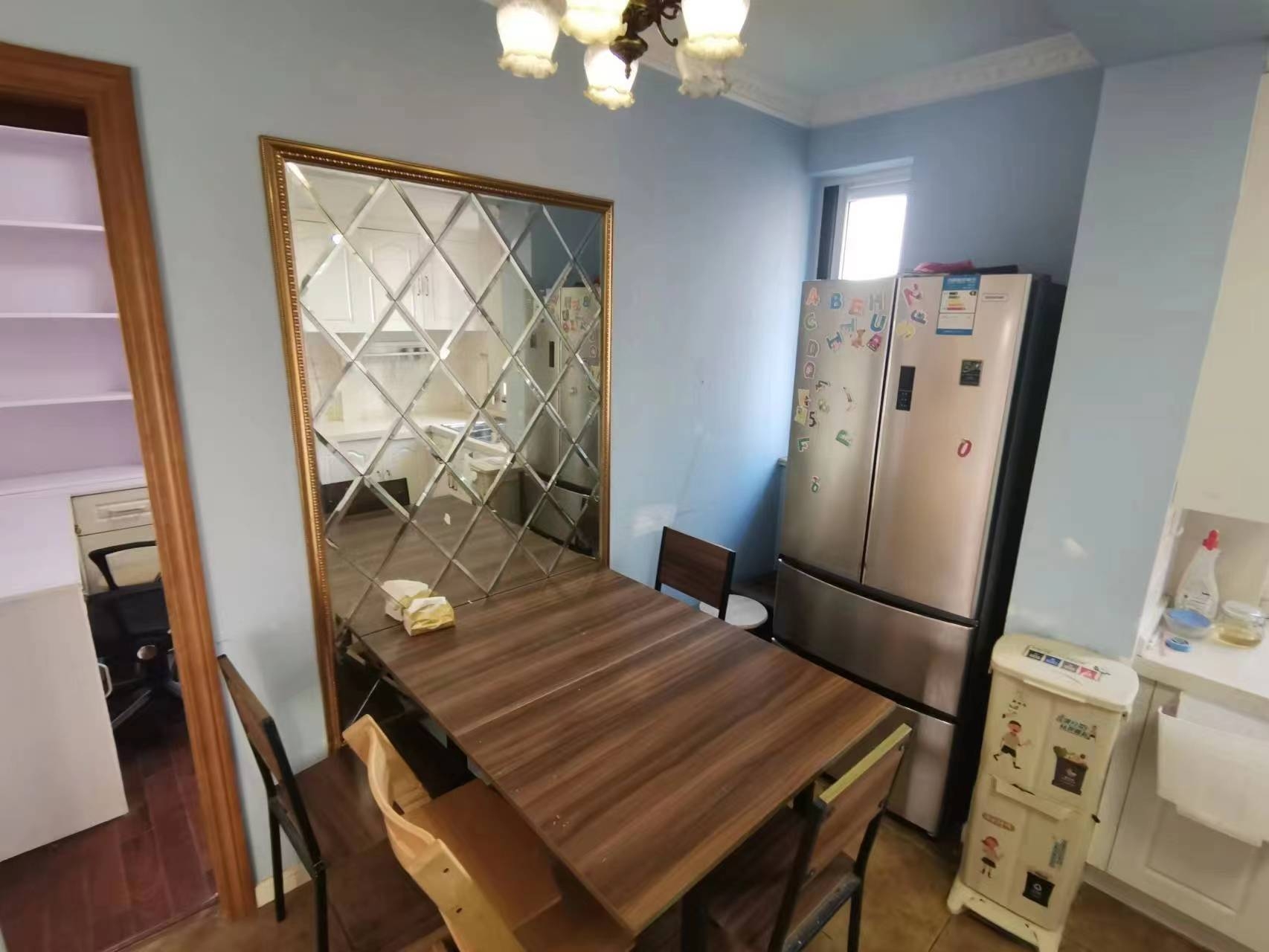 三室两厅一厨一卫一衣帽间,精装修房屋,家具家电全配(高端品牌),南北通透,房型正气,适合高品质家庭居住。 房东直租,安全稳定,租房有保障,随时可入住,随时可看房。 位于虹口区广粤路1500弄学府花苑,距离3号线江湾镇站/1号线汶水路站10分钟路程(自行车),周边有菜场,商场(协信星光广场),学校等,生活方便。 Three bedrooms, one living room, dining room and kitchen, one bathroom, and one cloakroom, Nice decoration, with furnitures and household appliances fully prepared (Good quality), north and south transparent, the room is healthy, suitable for high-quality family living. The house is direct rent by the landlord, safe and stable, rental security, can see the house at any time. It is located in Lane 1500, Guangyue Road, Hongkou District, 10 minutes away from Jiangwan Town Station on Line 3 / Wenshui Road Station on Line 1 (by bike). It is surrounded by food market, shopping mall (Xiexin Starlight Square), school and so on.