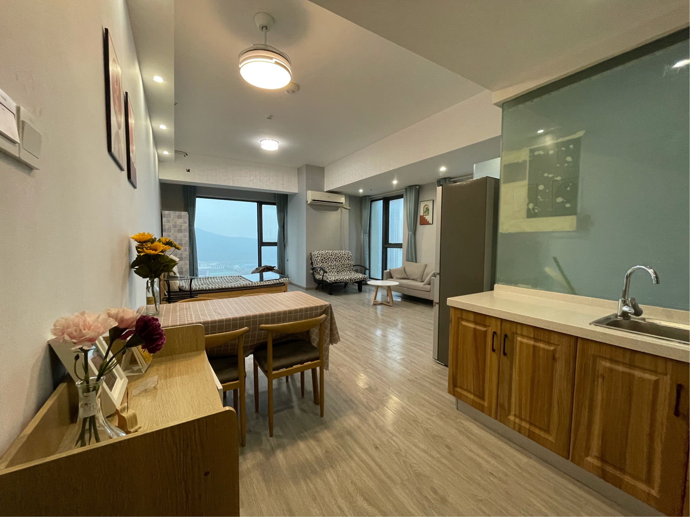 南京仙林万达茂公寓D座,靠近4号线最近的那座哦。公寓是边角的大户型公寓,有三面大的落地窗,朝南,南边有一扇大的落地窗,有晾衣架,西边有两扇落地窗,通风和采光都很好,独立卫浴(价格不包含物业费哦)最早2024年7月19号可入住。