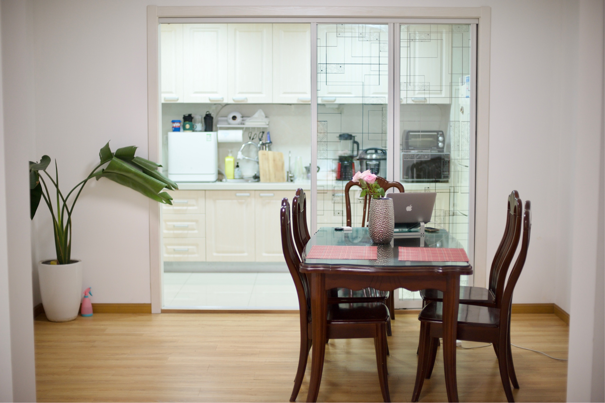 刚来上海的时候住着中介的 3000多每月的房子,然后就是各种隔板问,没有公共客厅,然后一套房子五六个人。空间拥挤,狭小。我觉得这不是我们来上海生活该有的样子。我喜欢老友记里年轻人们坐在大客厅里相互分享着大家的生活,最终成为很好的朋友。这是每个来上海的年轻人所期盼的生活吧。所以我租了这个空白的房房子,然后按照自己的想法进行了简单的布置,希望有家的感觉,也希望带给有缘人家的安定和归属感!年轻人在都市拼搏,也要好好的生活,好好地经历这个城市,这也是来上海很重要的一个原因吧!加油!希望碰到有缘人做室友。希望是爱运动,爱干净,三观不极端,平和,情绪稳定,不要太抓马。非常期待见到你 Hello everyone A 150sqm apartment with 3 bedrooms 2 bathrooms apartment around Zhongshan park area line 2.3.4 metro station 2 stations away to Jingan , Xuhui. In the center to anywhere in Shanghai. The flat is located less than 2 block away - 5 min walking (5-7 min biking) distance - to Zhongshan park station. It is in the middle of a very nice and international neighborhood full of pubs, supermarkets, fruit/vegetables/international discount shops and restaurants. Super big flat, with cozy living room with big sofa, nice decorations, washing dry., water filter and two air filters. And I put one air filter in the balcony to transfer the purified air into the room. I turn the balcony into a gym with a roller, yoga mat and resistance band, stretching stuff. All walls for every room are real concrete which mean this is a big apartment with just 3 bedroom and 2 bathroom, no fake wall. 3 rooms and 2 bathrooms (one in the master bedroom). Bright room with plenty of sunshine and storage space and a walk-in closet Rent to be paid every 3 months: (1 month deposit) Currently Just me living in the apartment. share bills (electricity, water, gas) 50 internet fee. Please do not hesitate to contact me for more info or if you want to organize a visit! I have a video taken for you to check out more details. Thank you Hope can move in ASAP. No couples sorry