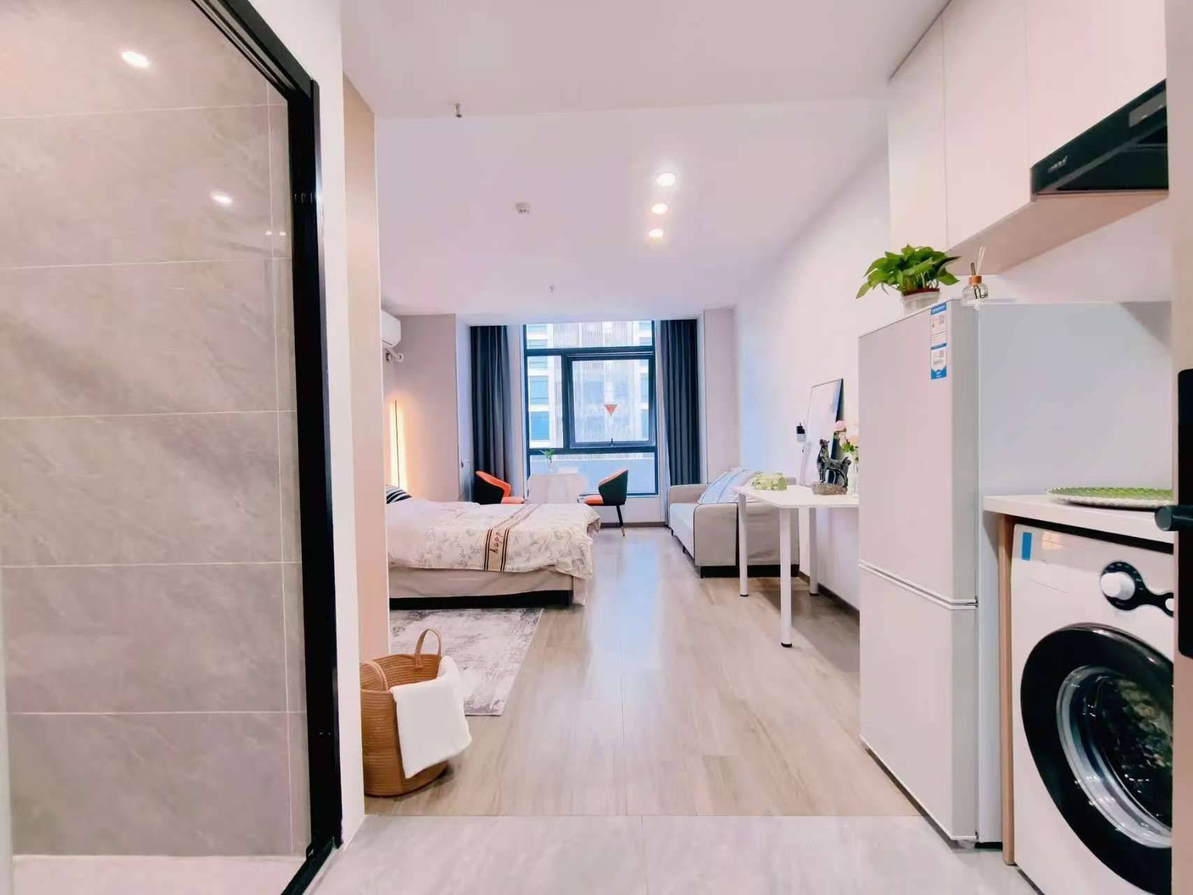 【地理位置】漕河泾板块,虹梅路地铁口100米 全景落地窗、洗衣机、独立卫生间、 干湿分离、油烟机、空调、冰箱 【生活配套】商业:漕河泾印象城700m,美食购物休闲娱乐 【免费公区】会客厅,配备饮水机。 ——2楼有商业健身房(铁馆),棋牌室 【租期】4-12个月 【付款方式❗】押一付一/押一付三,短租上浮(价格可沟通) 【宠物】~猫狗都可以 【户型面积】15~40m,租金2500起 【水电收费❗】扫码预充值,电1.2元/度、水7元/吨、网络50/月,不用不花钱。 100M 50 200M 80 300M 110 【停车❗】500元/月/地面,物业办理 晾晒区:楼顶,天台,后面做晾晒区❗❗ 外卖快递可以上楼❗❗❗ 【公寓服务】;非人为损坏设施,免费维修 管家服务、24h安保系统,给您优质的居住体验!