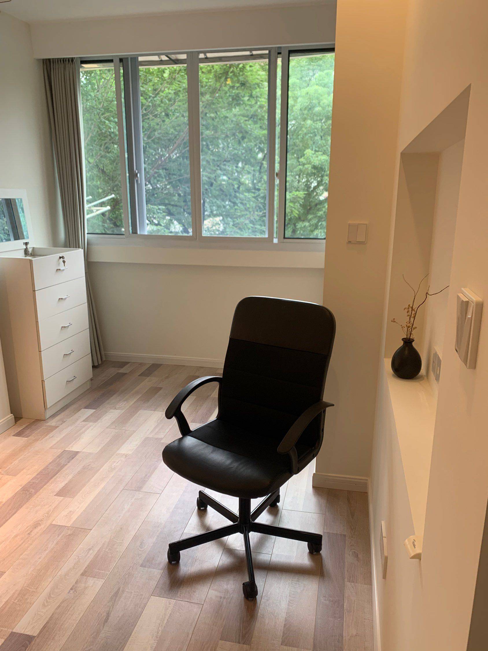 虹桥核心地段,窗外绿树浓荫,冬日阳光灿烂无遮挡,闹中取静。楼下居委会,菜鸟驿站,生活便利圈。The central of the Hongqiao Zone. Facing trees and Sunshine is unobstructed in winter. Walking to subway in 10M
