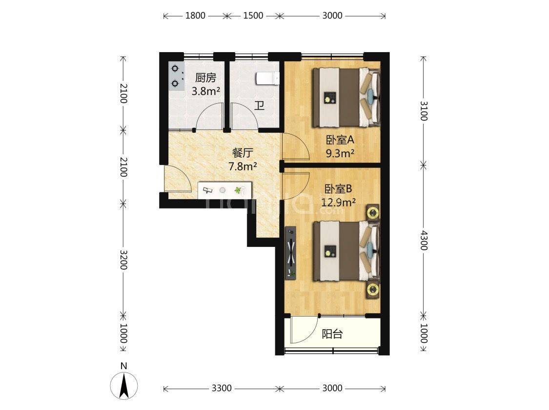 阳光三村2室1厅1卫 小区中心位置,南北两房。