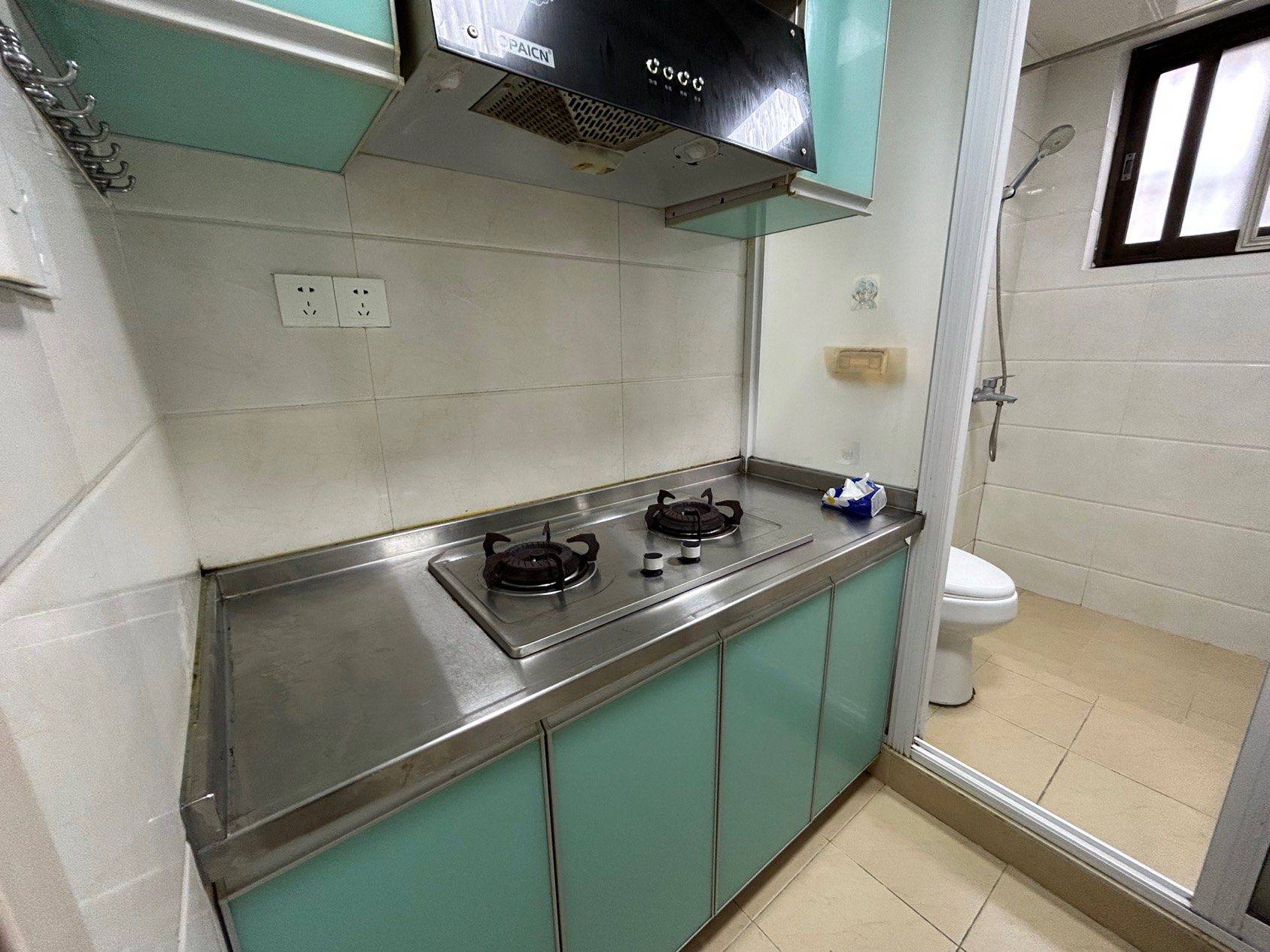 家具齐全。两个卧室都朝南,主卧有超大窗户,非常通透。厨卫设施都不错,自己做饭没问题。装修不老旧。(如图)