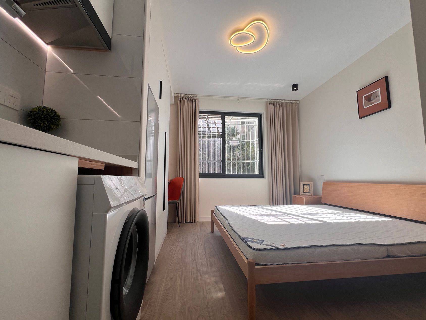前滩/东方体育中心一路之隔,靠近地铁 6/8/11 号线,到前滩办公骑车5分钟,走路 10-15 分钟可达。小区为 2000 年后商品房小区,闹中取静,物业保安完善,小区居民稳定,流动人口少。 房东自有住房直租,无中介费容易沟通,无二房东上当风险,全新北欧风格装修,每间房间配备独立卫浴厨房套间,全新小米冰箱/洗衣机,美的空调,电磁炉,书桌写字台,床架床垫,衣柜储藏柜置物架齐全,房门和柜门都配置密码锁。提供免费 WiFi,民用电费独立电表。 目前开放的房间为间房型朝南主卧,10.19后可入住。具体情况私信了解。