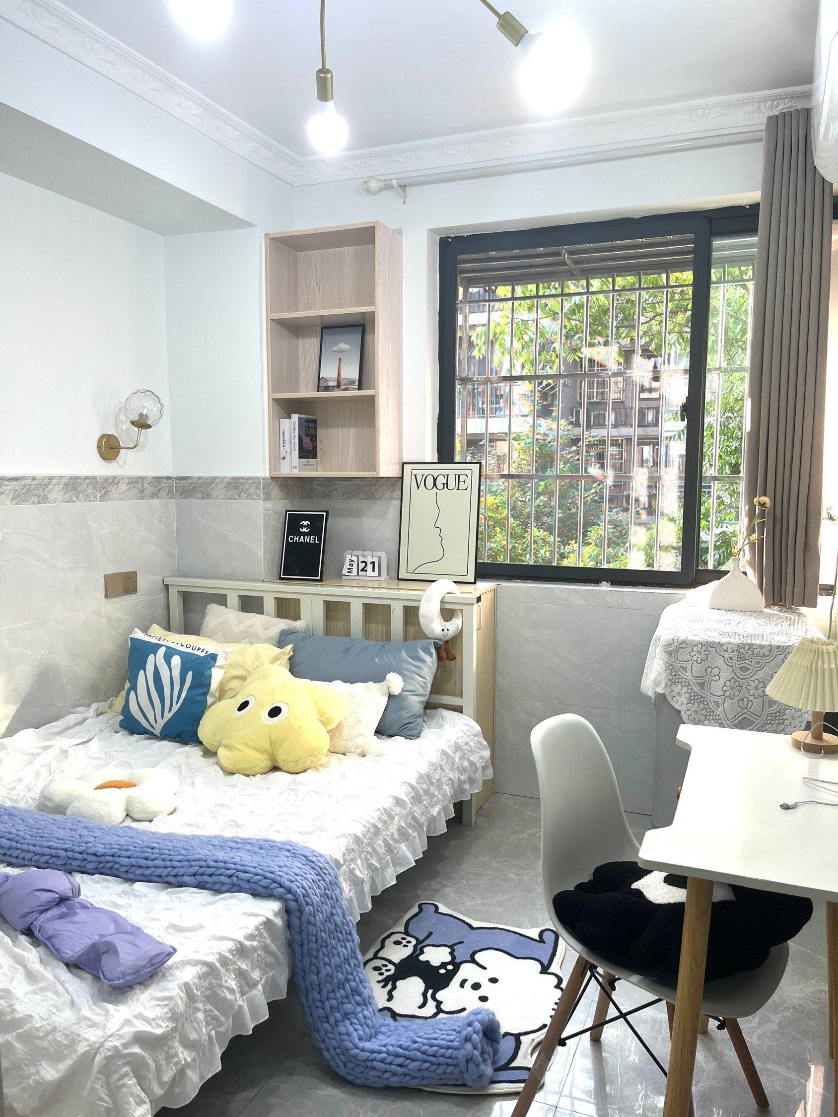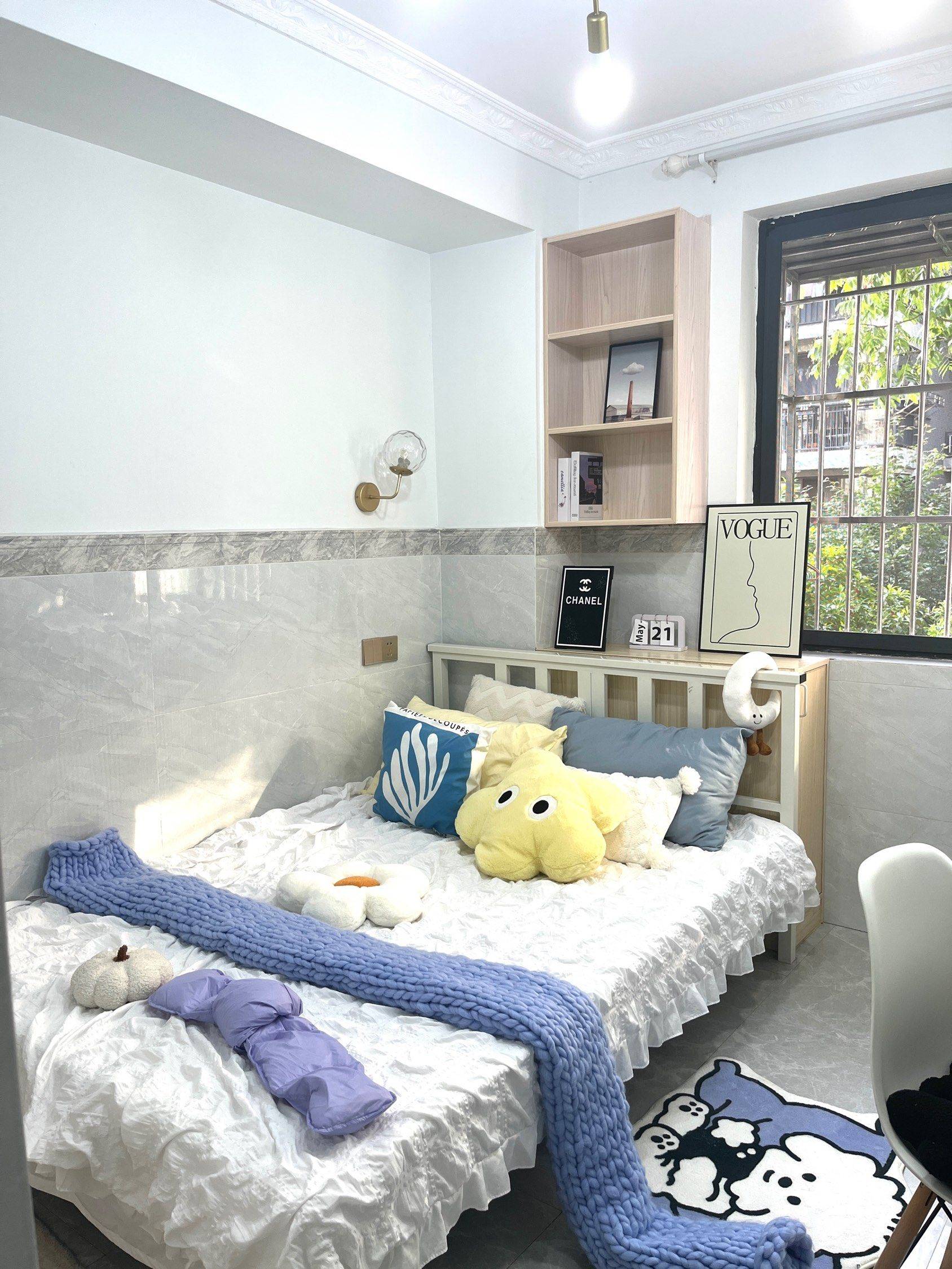 朝南三楼,一室一厨一卫,有密码盒可放备用钥匙,厚的席梦思,家电齐全拎包入住。不短租