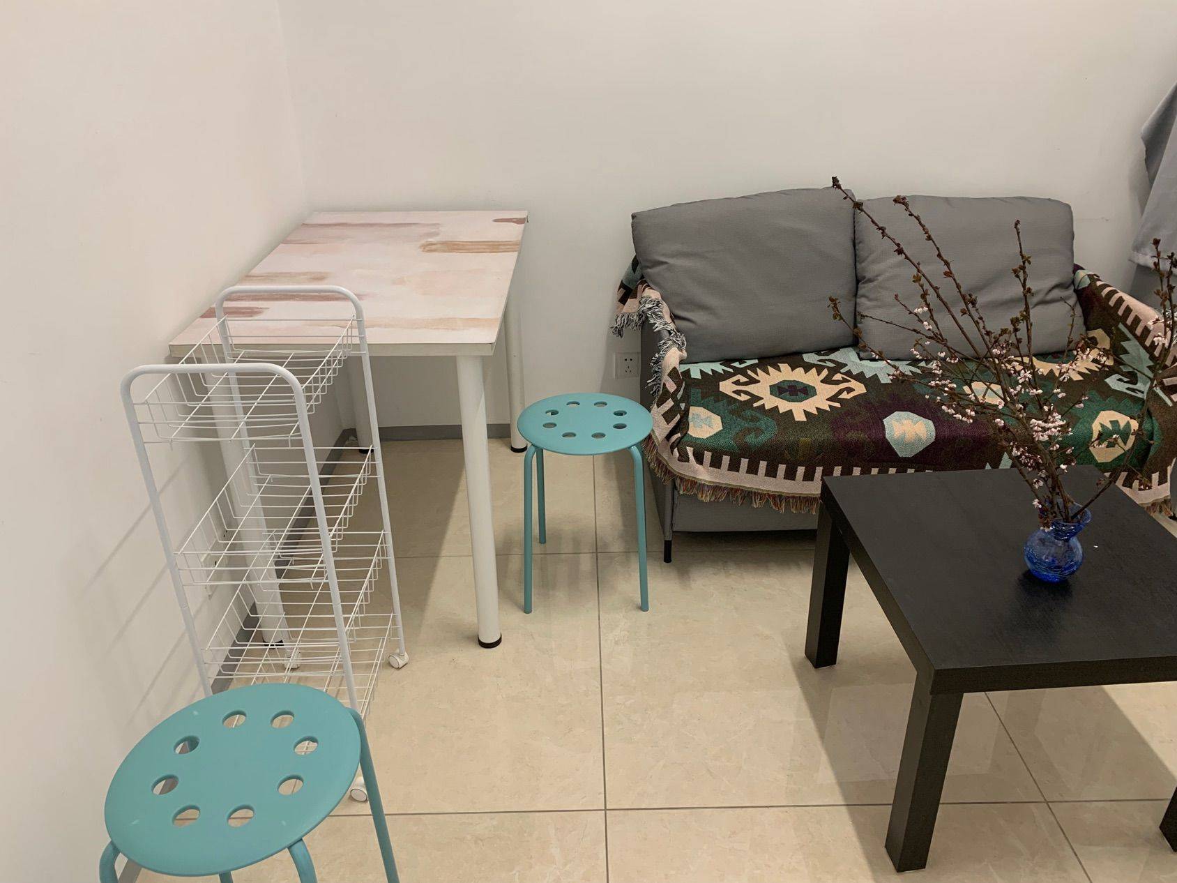4、屋内设施:床 床头柜 衣柜 书桌 吃饭桌 茶几 。空调滚筒洗衣机电热水器冰箱微波炉,电器都是品牌,23年购入。家具都是宜家。22年装修,干净整洁,墙面立邦地砖马可波罗,无任何甲醛。
