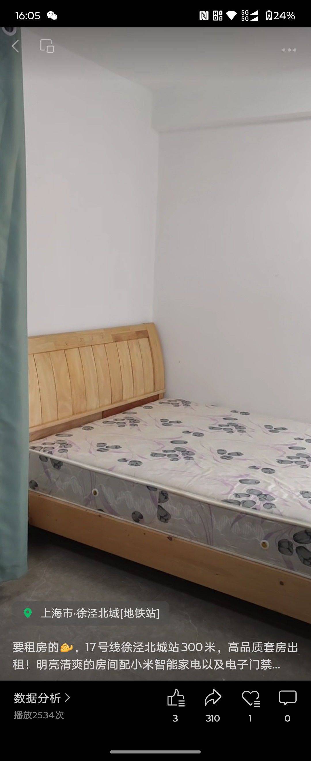17号线徐泾北城站(4站到虹桥火车站无缝衔接2号线)300米,步行5分钟,精装全配套间,电子门禁系统及小米智能家电配置,自己家的房子非中介二房东,可配合办理居住证。
