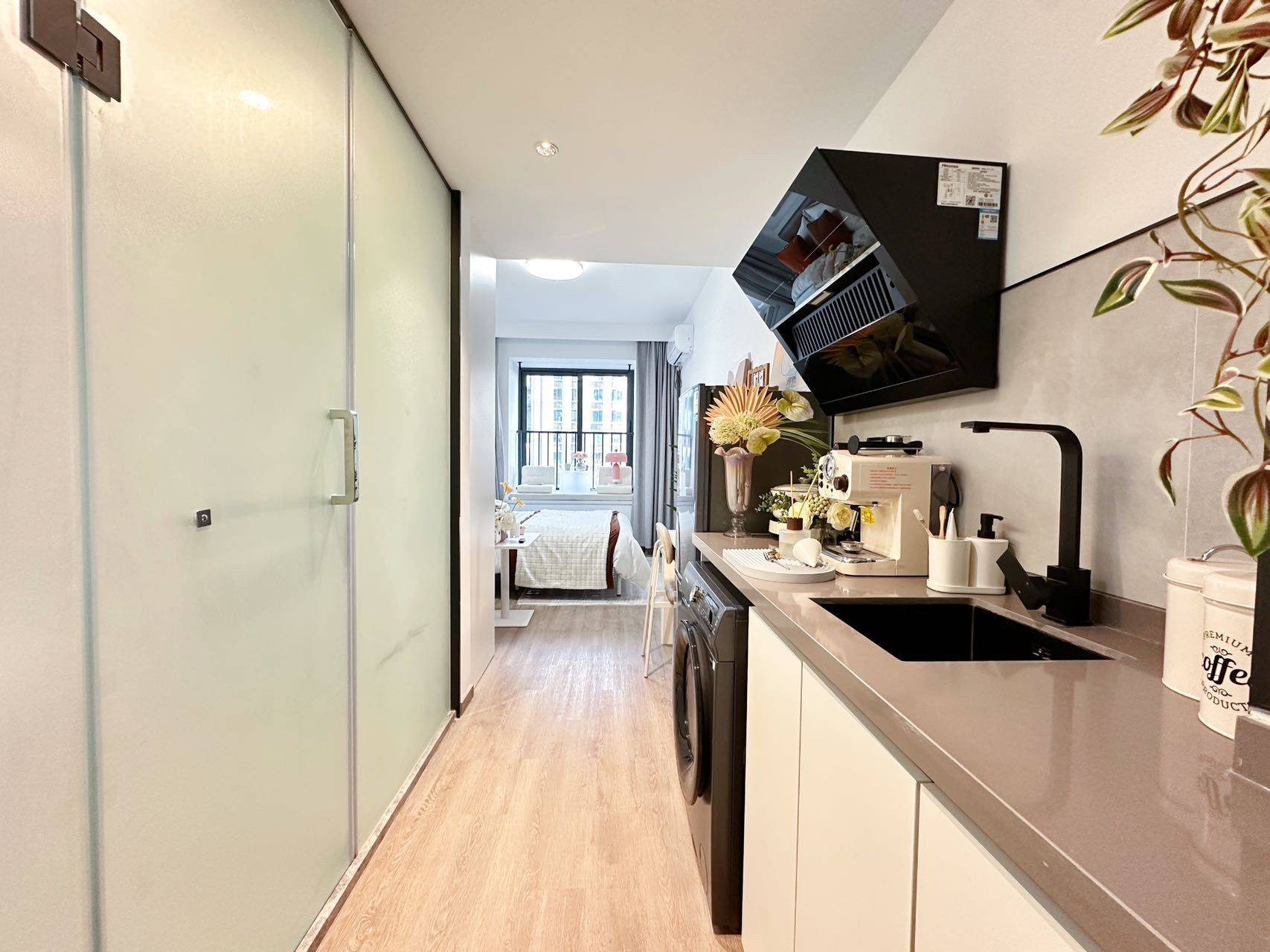 保障性租赁住房 民用水电人才公寓地铁口 一室户 一室户落地窗 一室一厅 配备电磁炉 微波炉等家电Guaranteed rental housing, residential water and electricity, Jing‘an Temple Talent Apartment, subwa