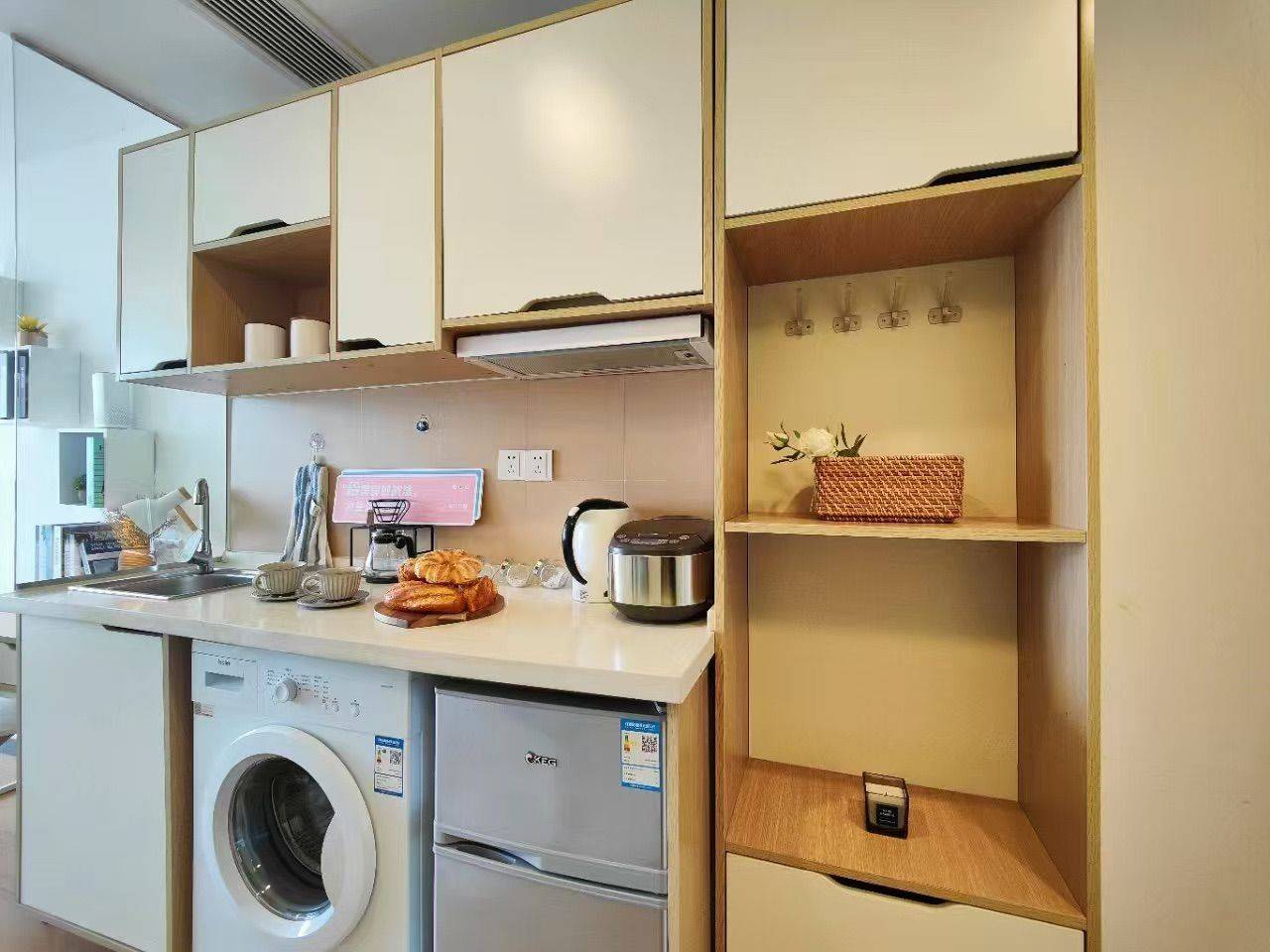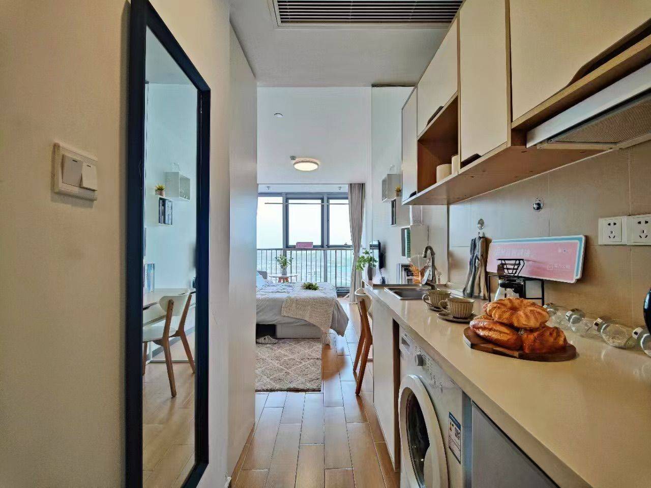 地铁一号线金沙湖地铁口附近 周边银泰百货,龙湖天街,金沙湖公园,万象城,高沙商业街等,吃喝玩乐特别齐全,位置很不错,下沙中心地带 房间30平左右,酒店式公寓,一两个人住完全没问题,家具家电齐全 目前是已经搬走了,随时入住,随时看房