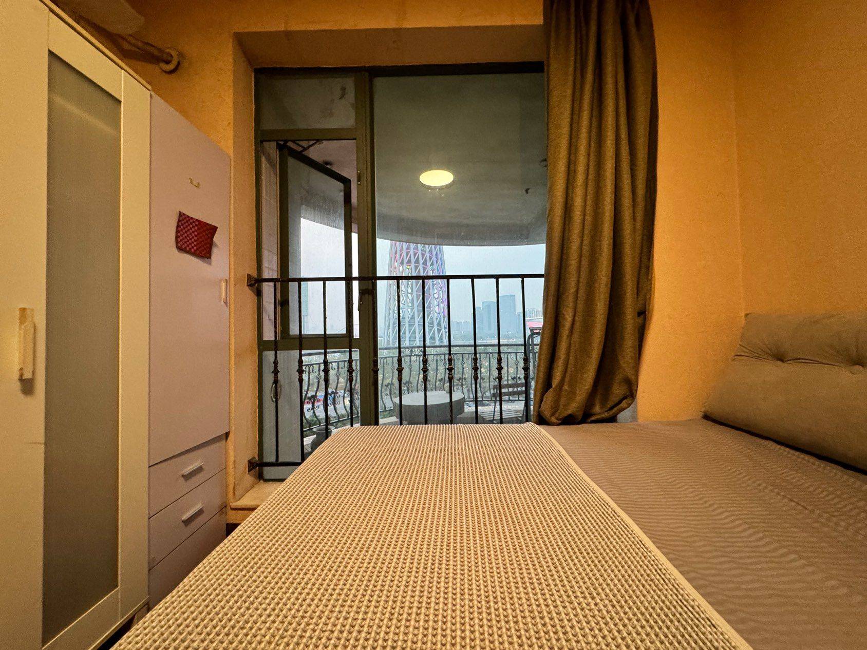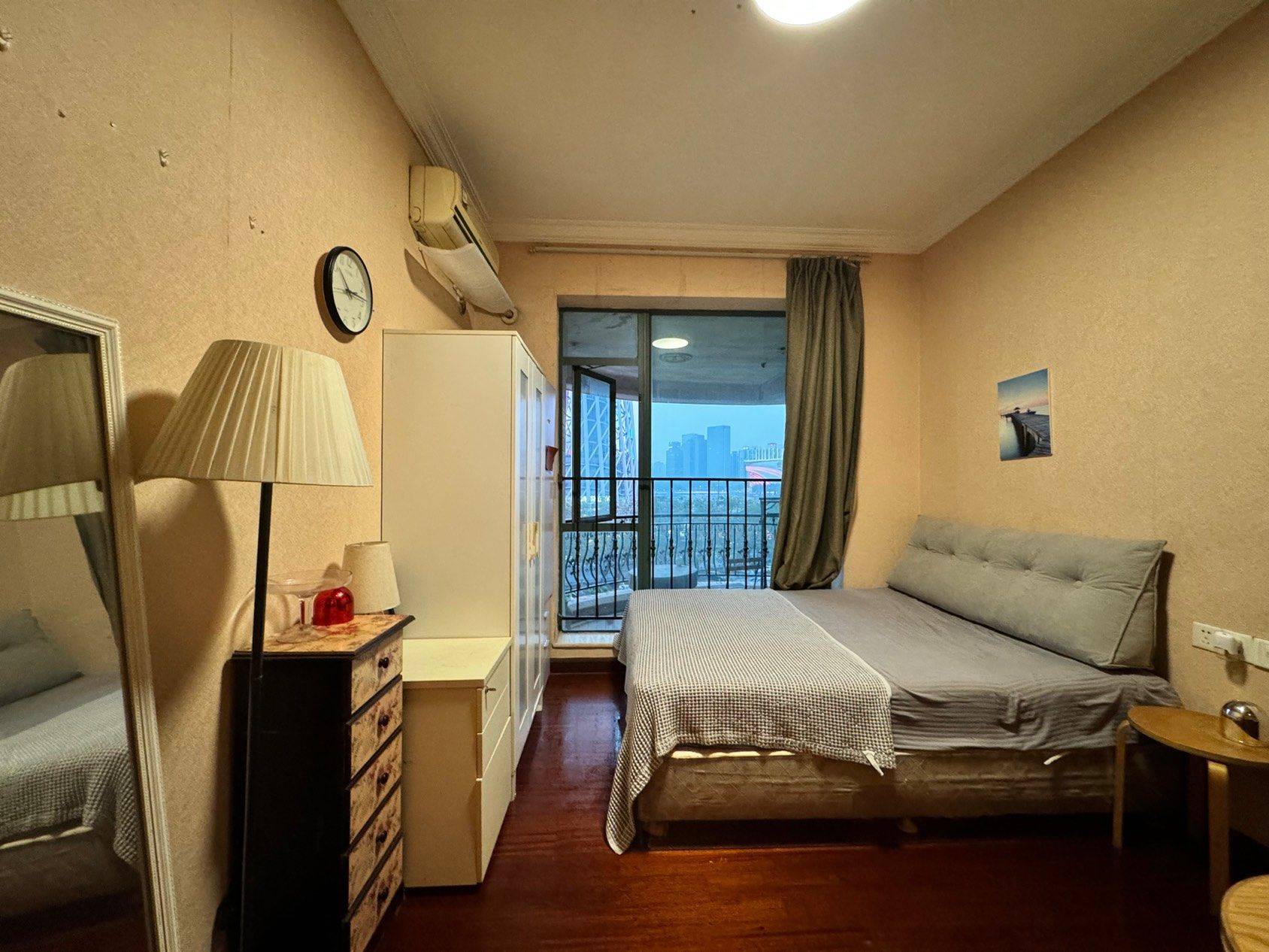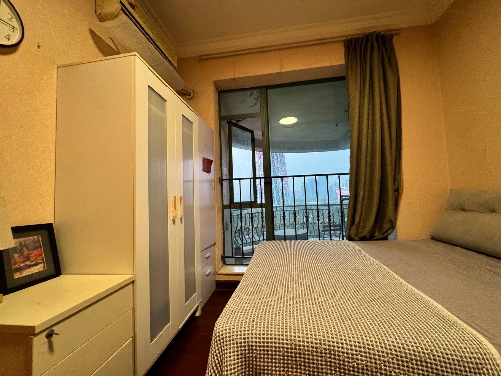 房间实际看着挺大的。但是我不太会拍照面看着有点小。随时可以入住。男女不限。 卫生间是干湿分离的。燃气热水器、不用担心洗澡时间 周围地铁站、公交车都是很方便的。到广州塔站3号线和APM线5分钟。 小区24小时保安、民用水电、周边生活设施很完善,好吃的特别多。 舍友有主卧心理师、小房间饰品设计师、小次卧模特、小次卧游戏大厂小姐姐。现在次卧转租。 房租是2700一个月,网费31.8一个月、物业费146一个月。水电煤气费直饮水大家AA。 房间无隔断间!!!客厅一看投影吃饭吹晚风~