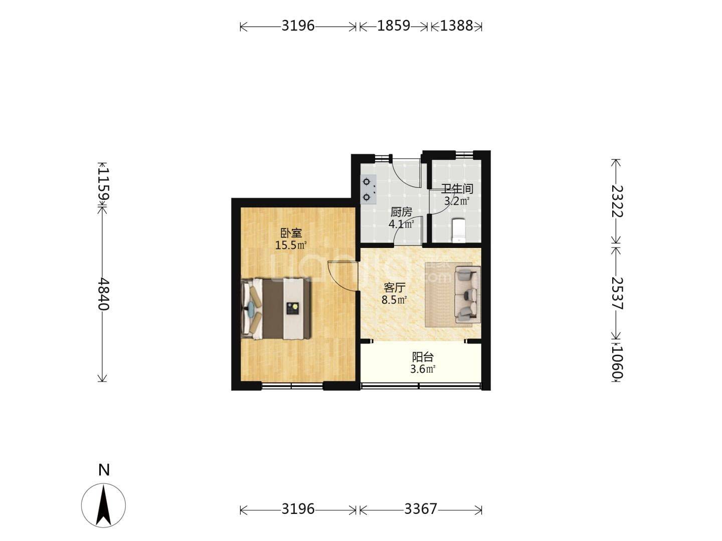 Rent : 3100RMB/M