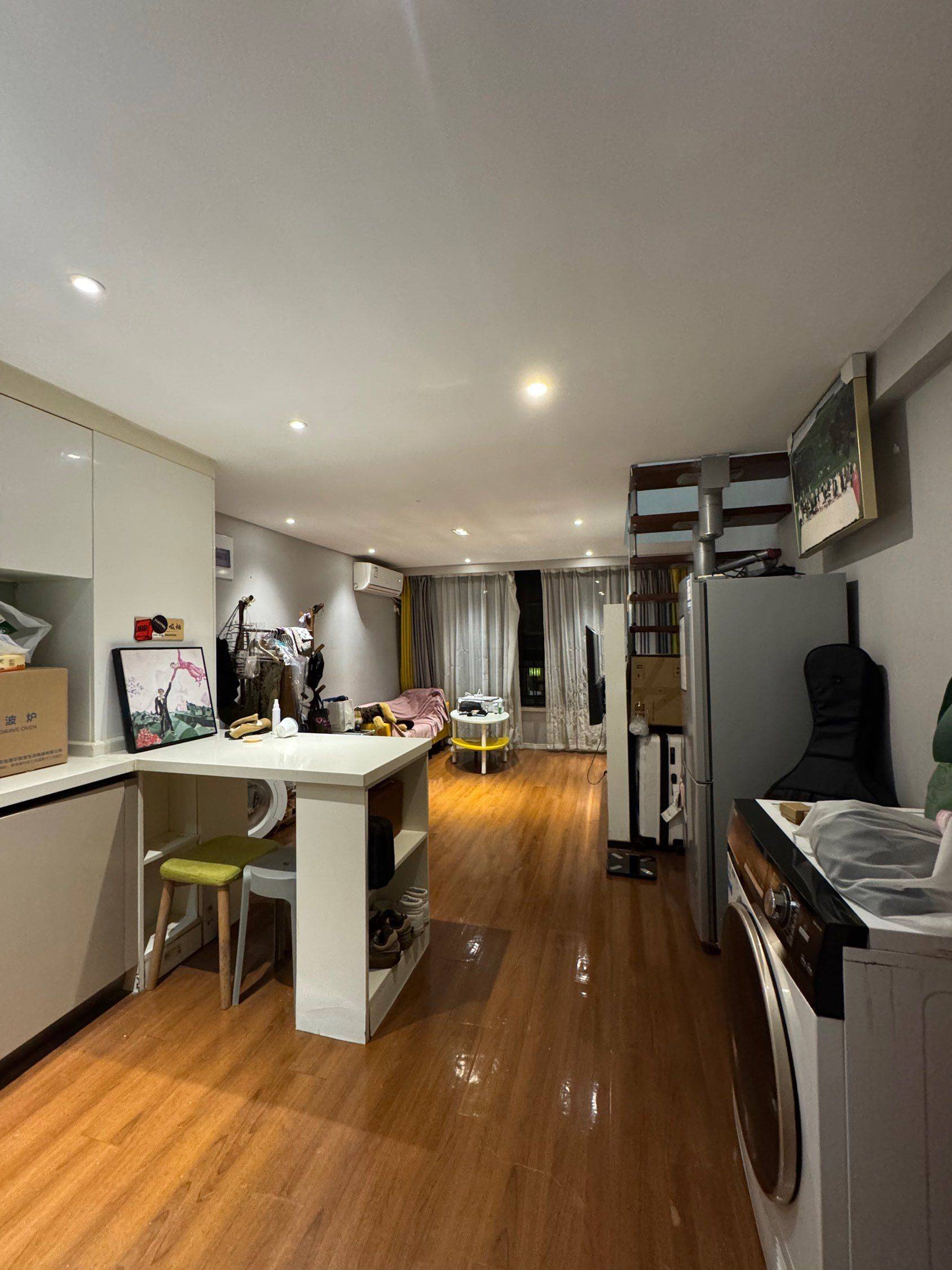 40平一居室Loft,位于滨湖区,房子在一楼,平时不用等电梯,小区绿化好,出小区900米地铁一号线文化宫站。 楼下客厅,楼上卧室,卫生间,衣帽间。卫生间干湿分离,上下楼都有空调,屋内有洗衣机,烘干机,无需晾晒,微波炉,锅具。WiFi 完善,适合1-2人住。 公寓住宅商水商电,除房租外无其他费用,水电自理不贵,有需要私信。