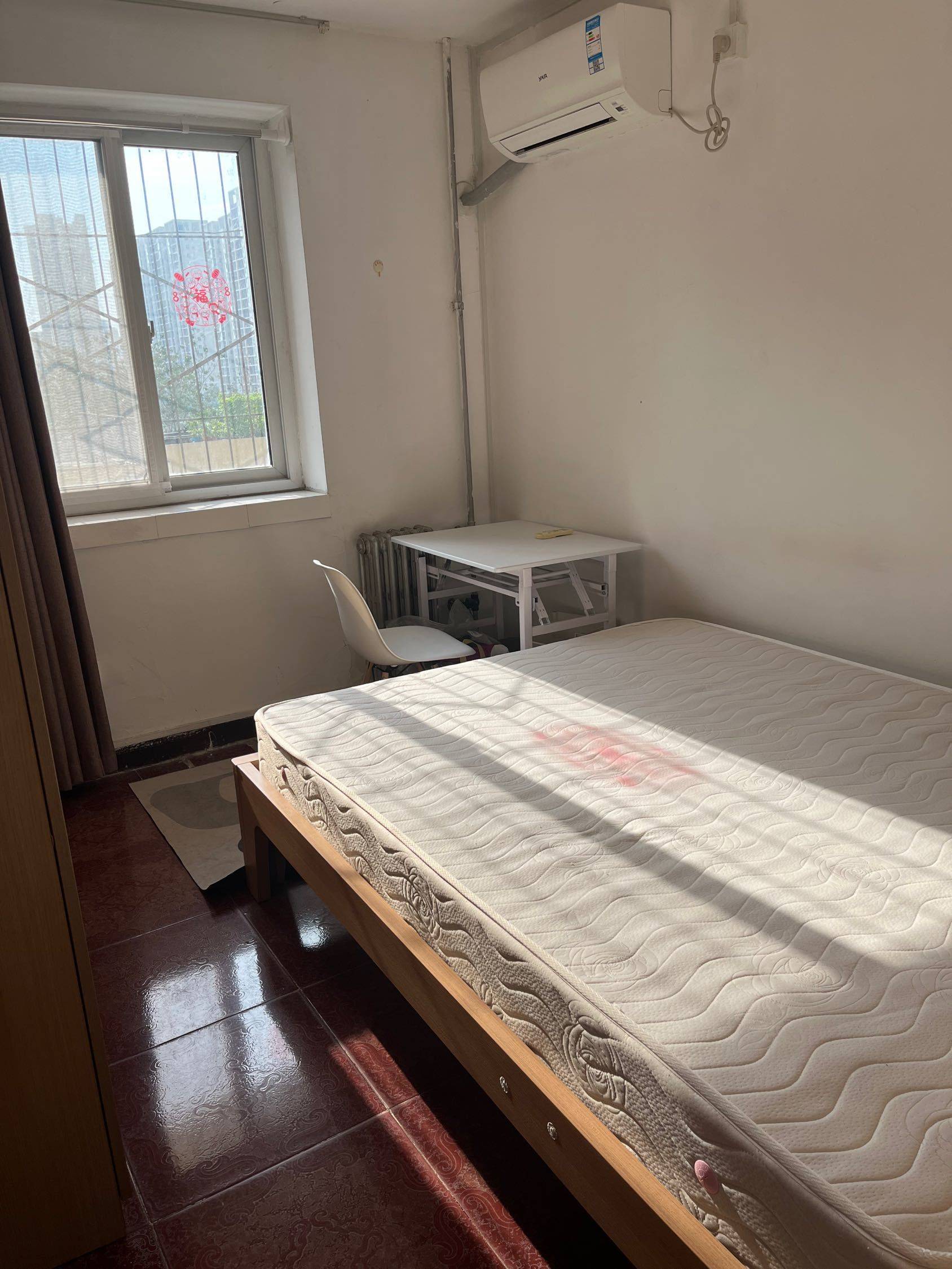 房东出租,十里堡八里庄北里两居朝东次卧,离十里堡地铁和红领巾公园600米,小区门口两条美食街;全新海尔滚筒洗衣机、智能马桶,要求一个女孩、不做饭,租金2200含全部费用(水电网暖气物业等)适合朝阳门 国贸 三里屯 抖音附近上班,离朝阳大悦城、朝阳公园2公里,随时入住,室友情况:主卧一个女孩 早九晚六上班;白天床上的红印为窗花反射到床上