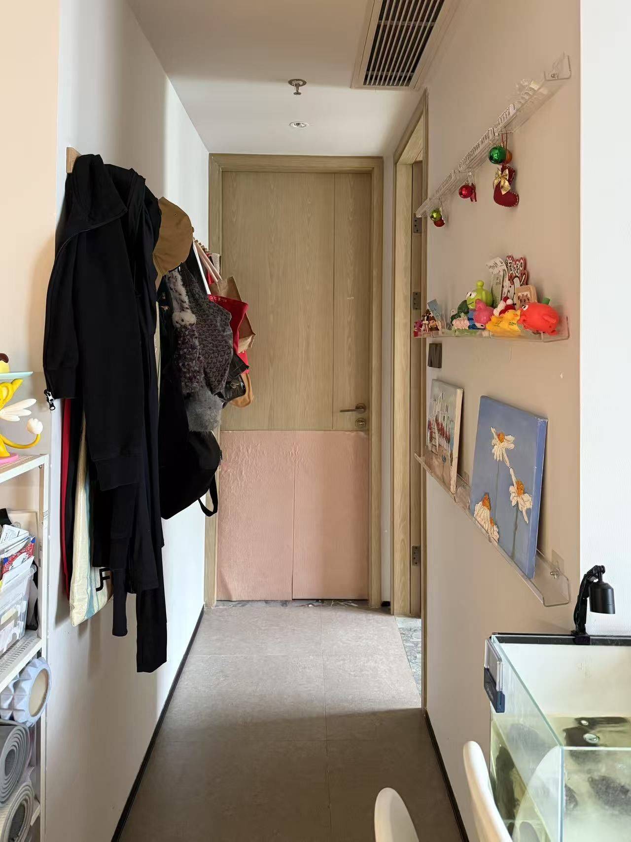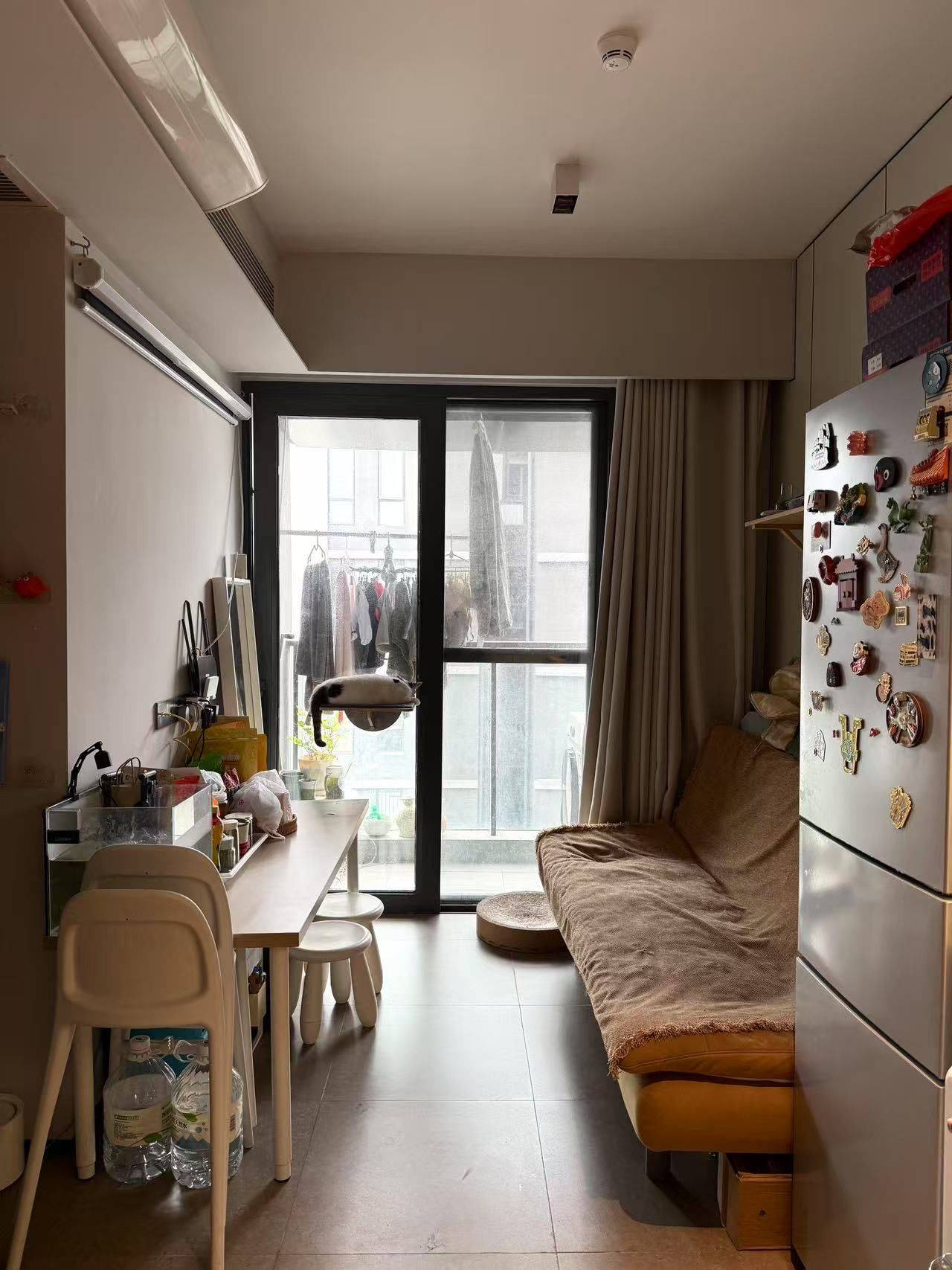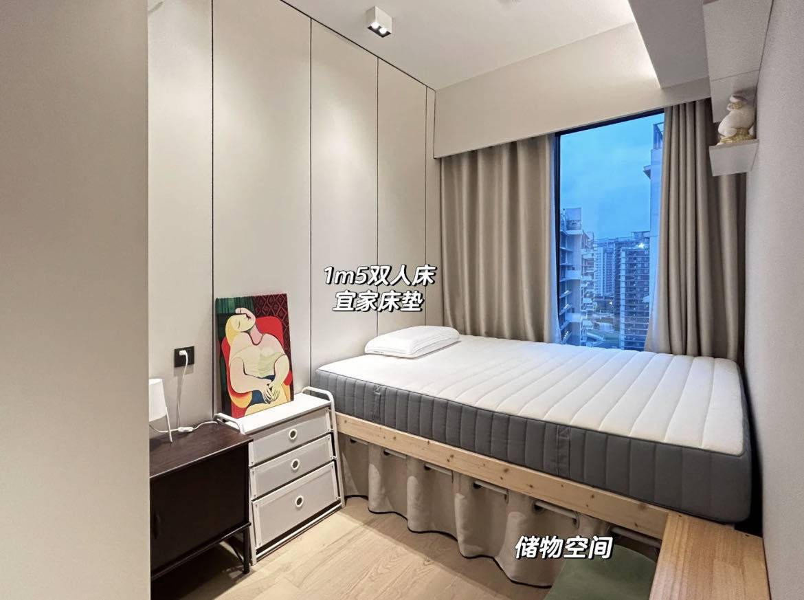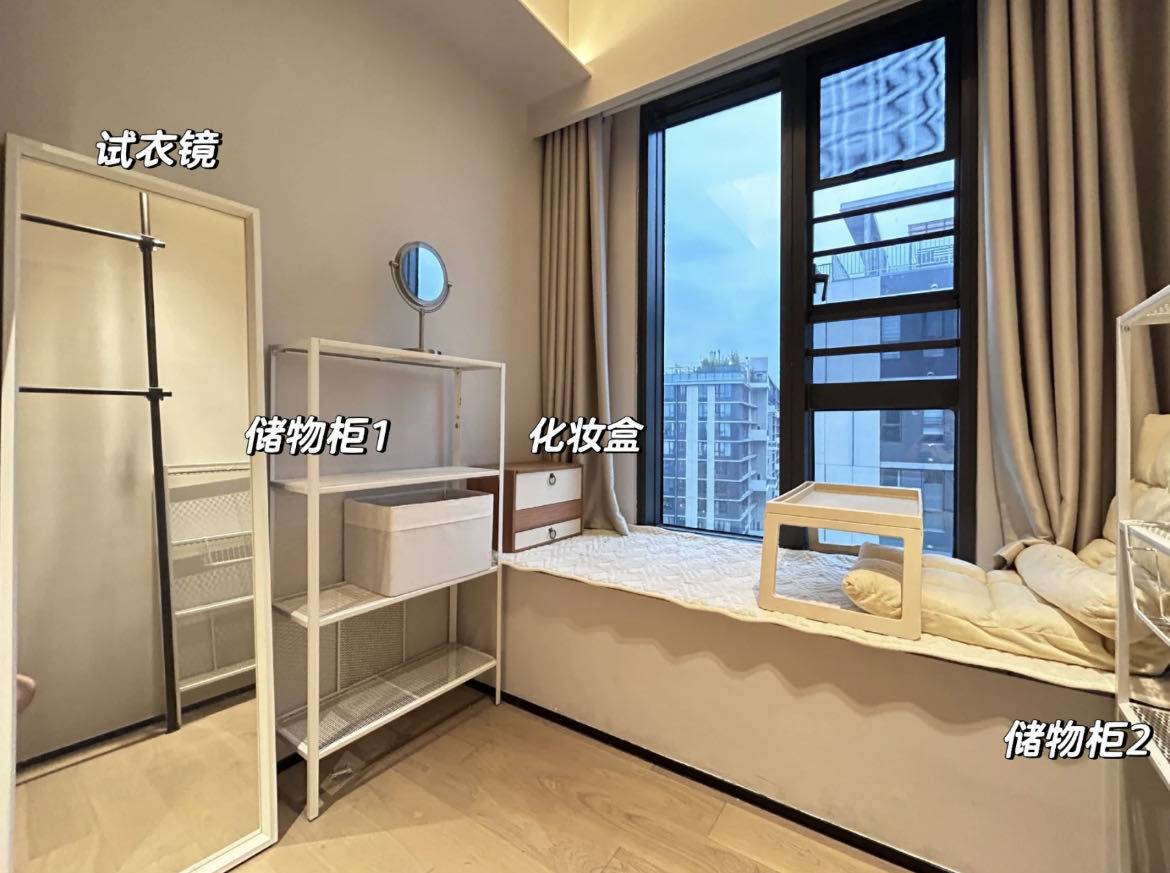 1.交通方便。 8栋靠近地铁站国展,步行10分钟,小电驴4分钟的样子,有12号线与20号线; 2.小区绿化面积大,环境美好,在家就能欣赏河景; 3.安静,邻居也不吵,整体住下来很舒服,偶尔能听到飞机降落到声音,但玻璃隔音很好,不会影响生活; 4. 温馨两室一厅一卫: 户型方正实用!两个卧室采光都不错(主次卧风景尤其好!)客厅宽敞,动线合理,房子虽小,但非常够用舒服!还可以养猫😸 5.拎包入住:家具配备很齐全,本来房东自己要住的,所以家具都很实用,也有一定收纳空间!