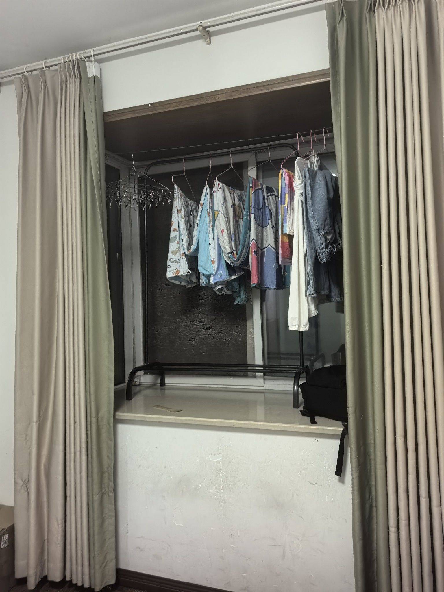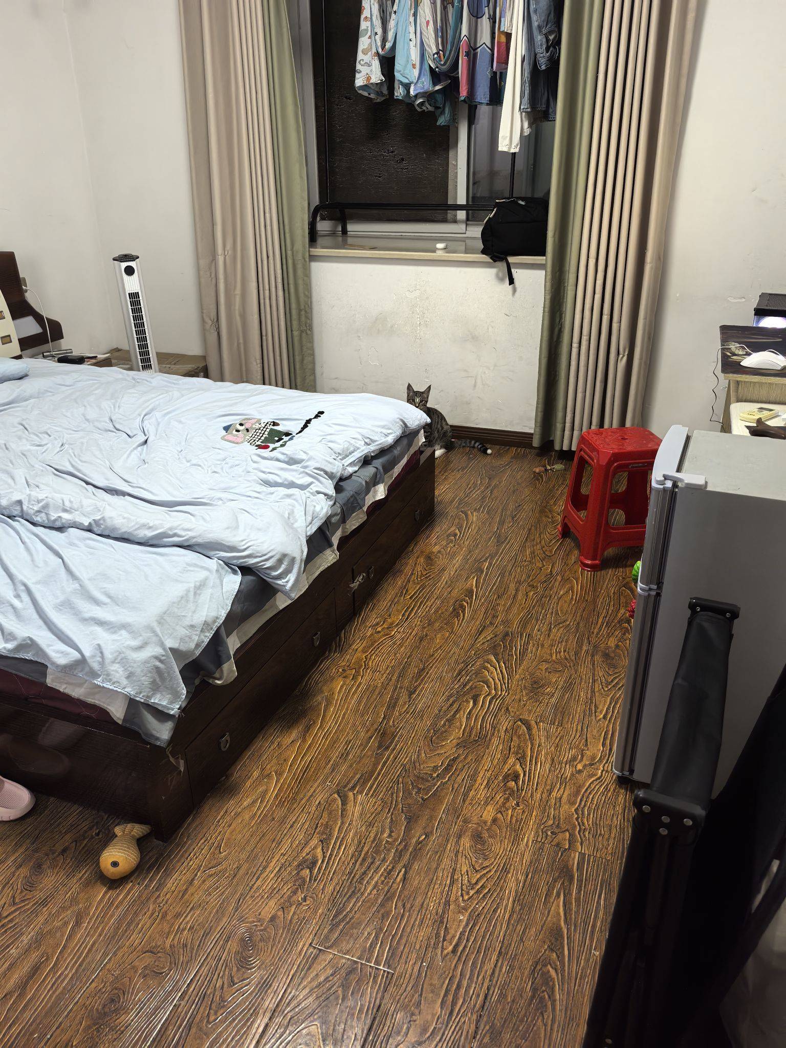 湖北大学对面,余家湖上段小区 主卧,大飘窗(可晾衣服)朝阳,衣帽间,独卫 1120 其他四户是隔出来的,共用一个卫生间,只有我这个是单独的,而且我把门加了隔音棉,一点都听不见外面的声音 因为本人要长时间出差去外地,所以试试运气,能不能转租出去 窗帘原本的不遮阳,这个是我自己花了快三百买的,直接送,还要拖把,扫帚,都是我自己买的,一起送。