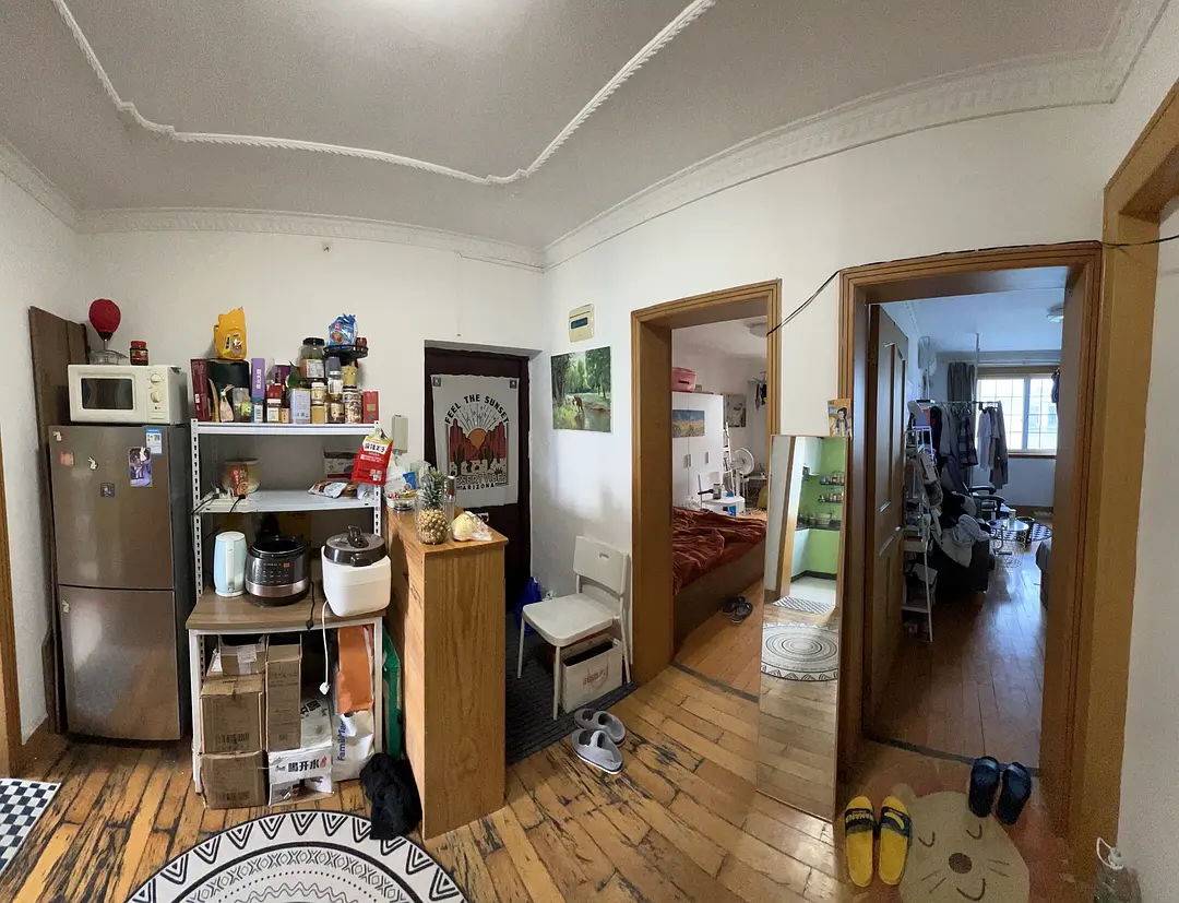 找室友,千兆宽带🆓免费用!民水民电,水电煤费用平摊。空调冰箱微波炉洗衣机热水器一应俱全。 要求入住者爱干净,能长租,有良好作息。可入住时间为8月中下旬。有意加微derekchen8168,备注租房。(中介勿扰) 朝南主卧带阳台,25平米左右。床2*1.8米,采光很好,阳台有超大置物空间。 地址:6号线博兴路地铁站旁金桥四街坊,近9号线台儿庄路。 通勤:步行5分钟到地铁站,小区门口就有公交车站 周边:吃饭的地方超多,外卖选择也多。罗森,联华,奥乐齐就在小区旁。金桥公园,乐刻运动可以健身。肯德基,星巴克,瑞幸等一应俱全。