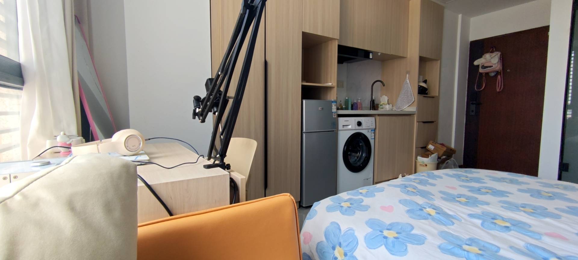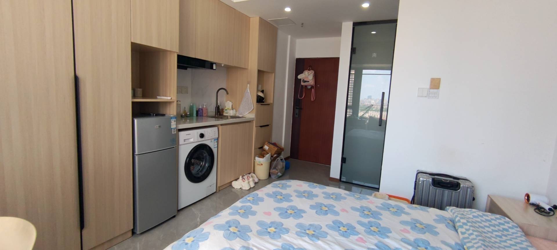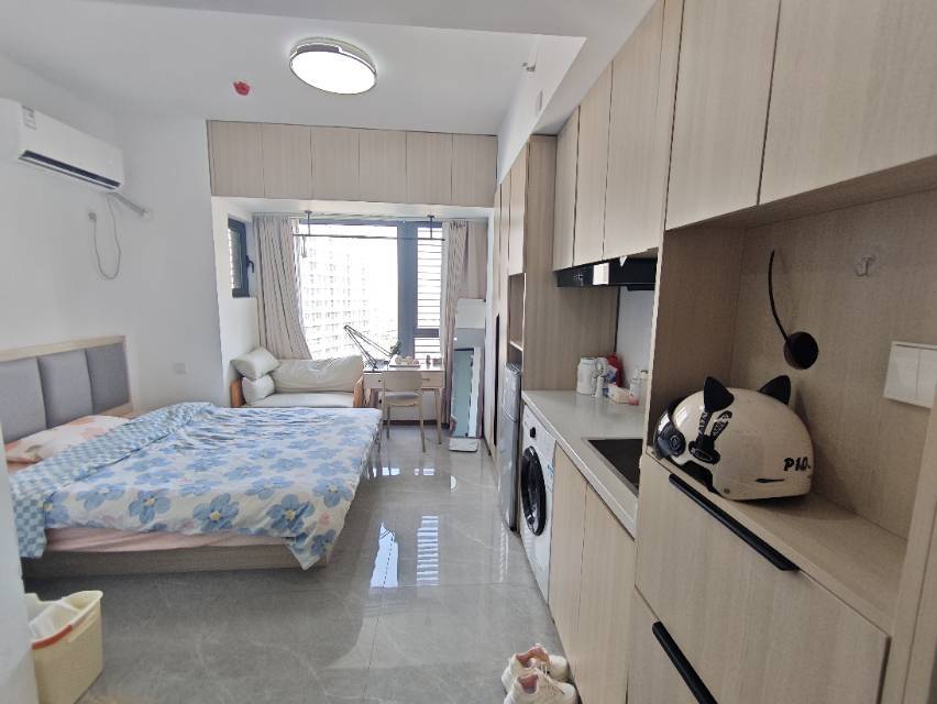 2.房子概况:本房在13楼,公寓单间,在大润发楼上,下楼就是商场,隔音很好,听不到楼下的噪音,空调声音也很小,厕所浴室干湿分离精装修,环境很不错,家具齐全;