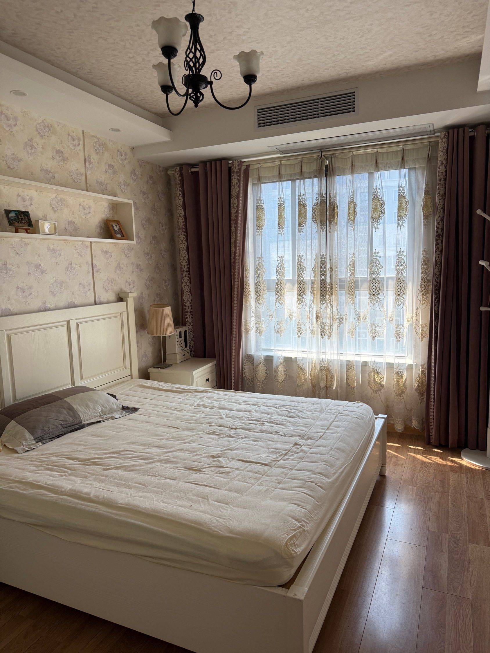 两卧三床一书房,三室一厅装修好,全屋中央空调,浴室地暖+风暖,可真正拎包入住。电梯高层,校园环境,中介勿扰。Wi-Fi免费,水电费自理。