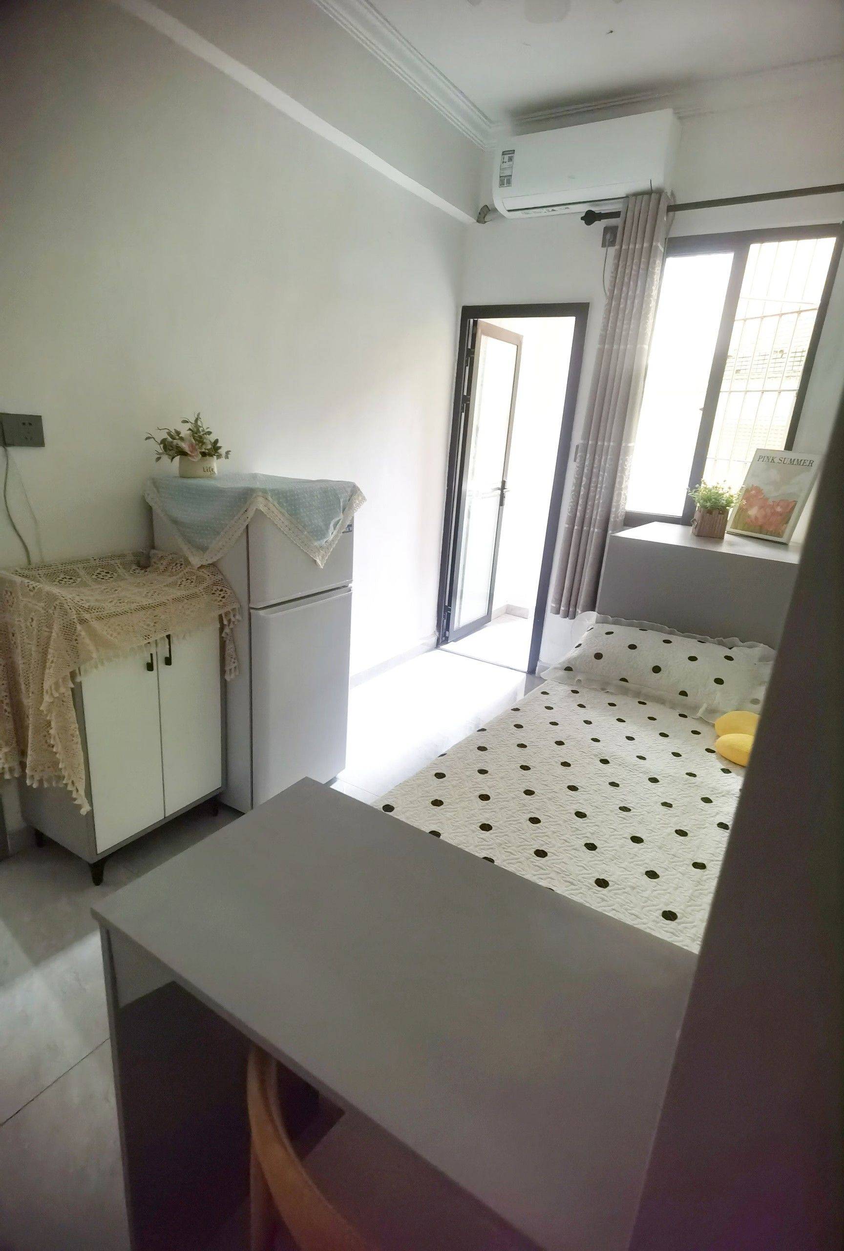 来我家住吧 这是一栋前年装修的电梯房,全新家具家电,小清新风格,房子在大路边,光线通风极好。 现有各款电梯单间和一房一厅。所有房间都有阳台。配I一应俱全,门口有停车场,楼下有电动车充电桩。货拉拉可以直接到门口。 视频为实拍7楼电梯单间,租金1100,押一付一。房子全采光,接受长短租。喜欢的小主可以联系我哟