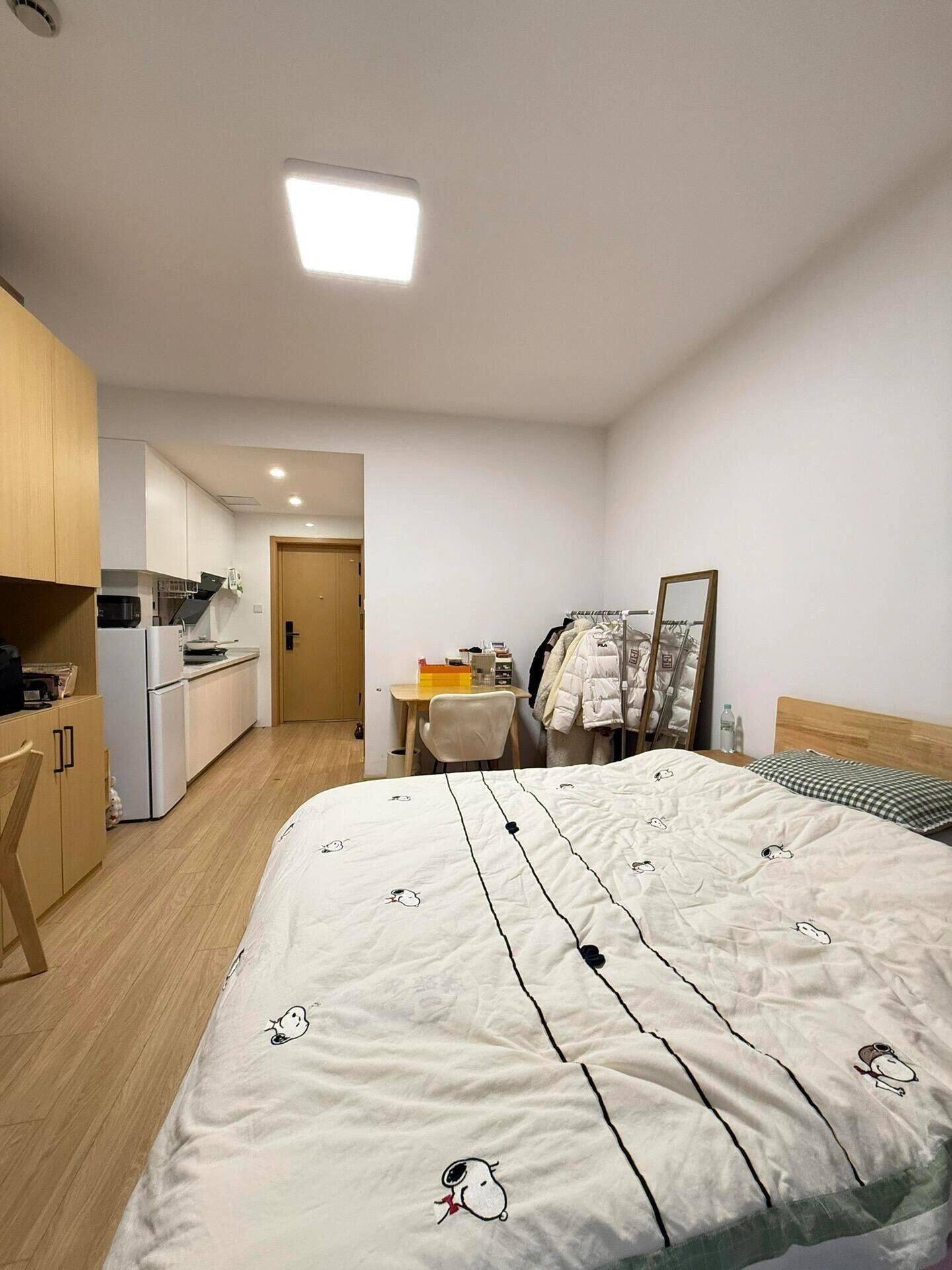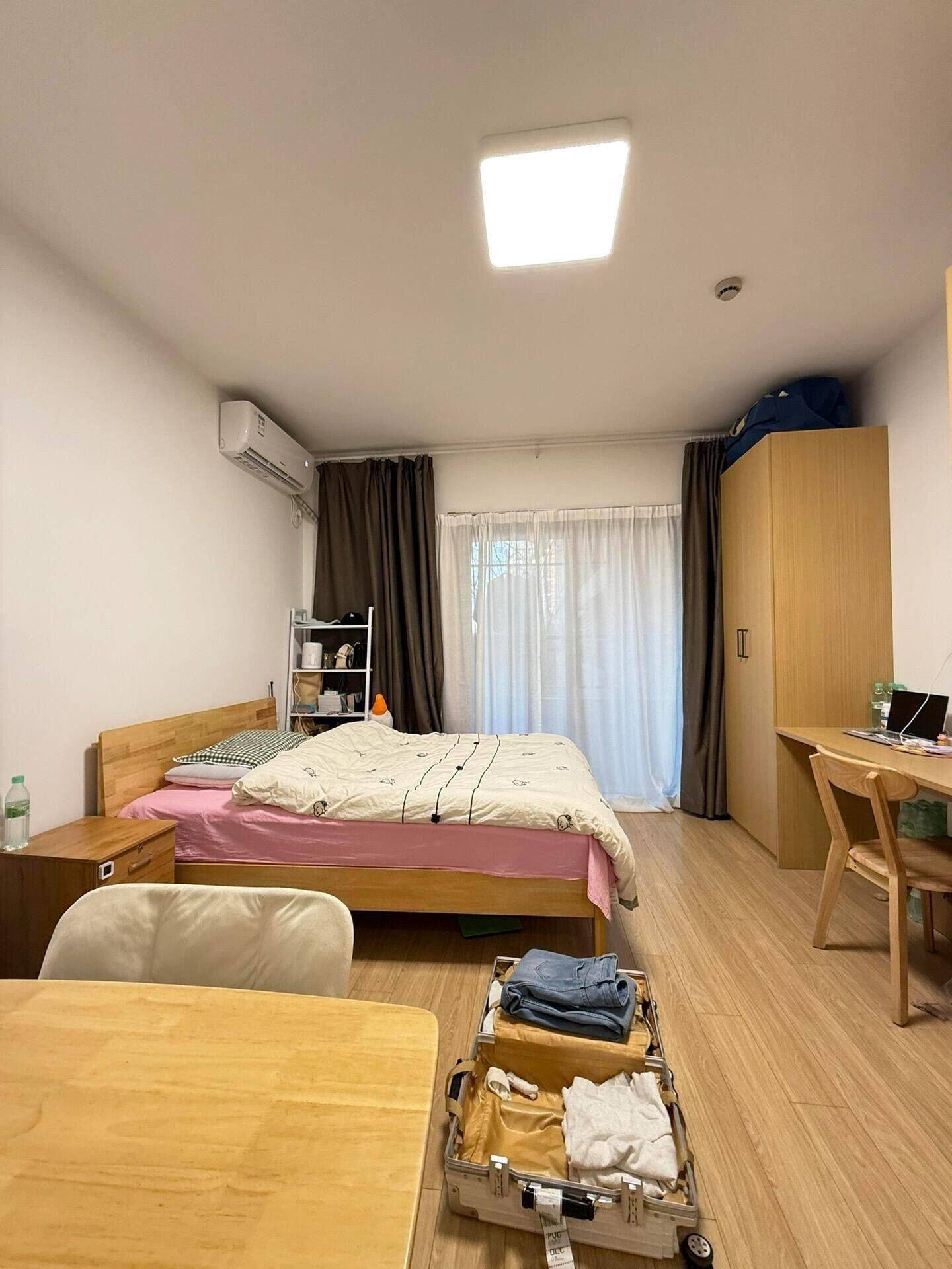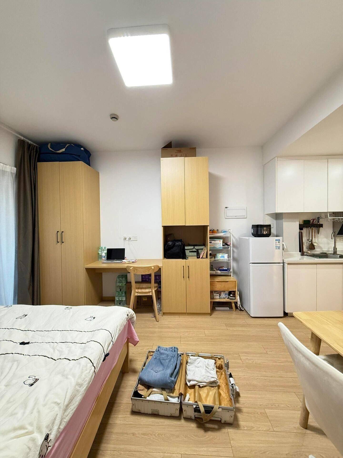 当时被调到这边来工作了,实习完该回老家了。这边都是民用水电 可以养宠物,房子朝南,采光好,空间也很敞亮。可以做饭,柜子大,不怕没地方存放东西, 家电齐全也都是低能耗的品牌家电。有门禁,密码锁,楼道有监控,安全性高,外卖可以上楼。