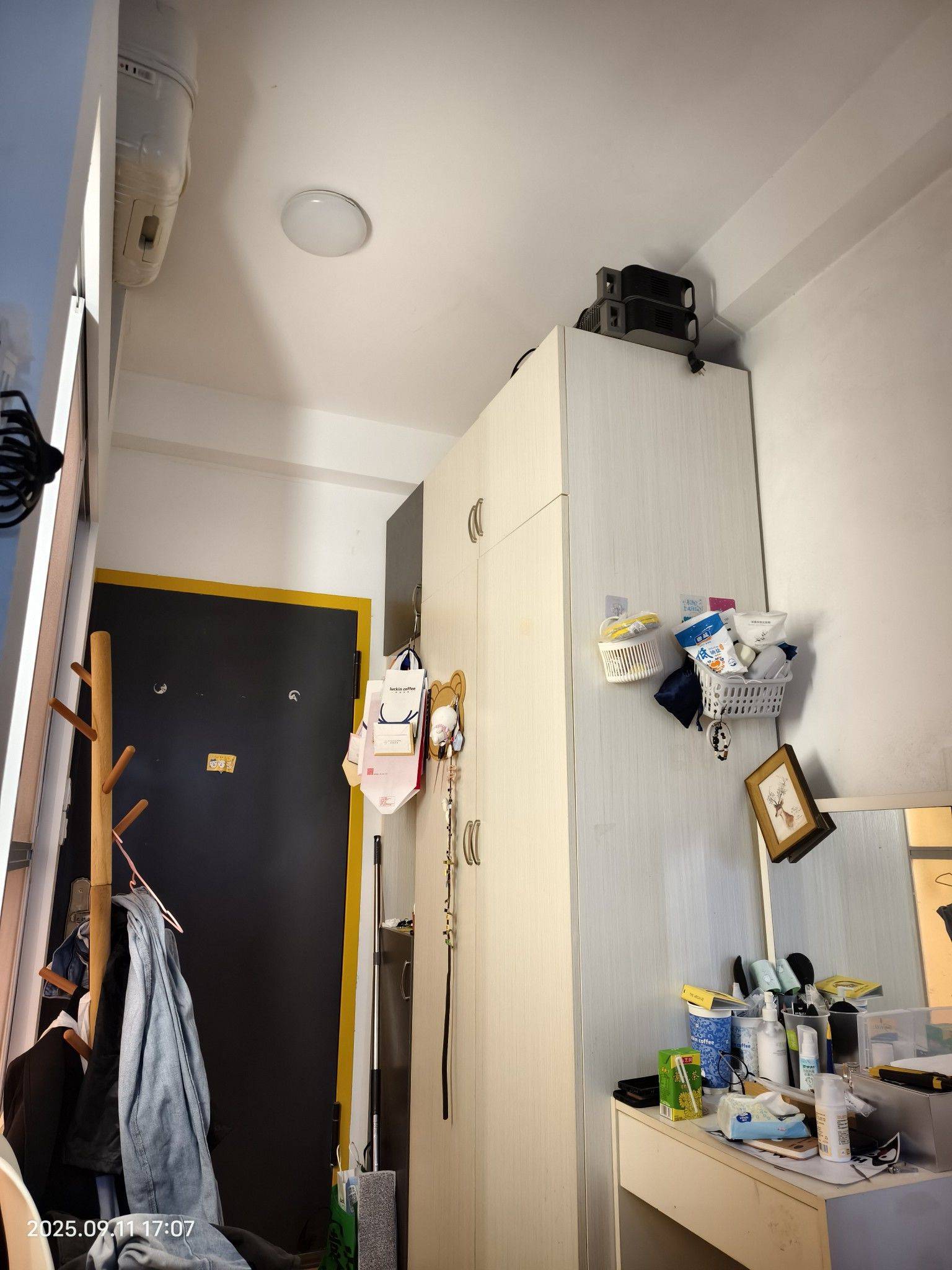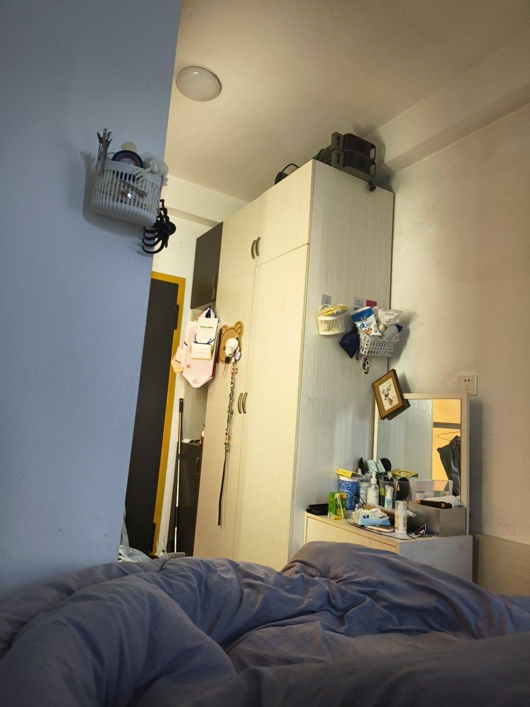 有配套设置一个衣柜,一个床,一个空调有阳台有洗衣机有有冰箱,有凳子,有椅子,有桌子,还有地暖再送个饮水机化妆台还有免费WiFi不用交钱反正基本全部有配套。每天几乎都开空调12小时。一个月电费是150,水费二三十左右离开前会清理干净
