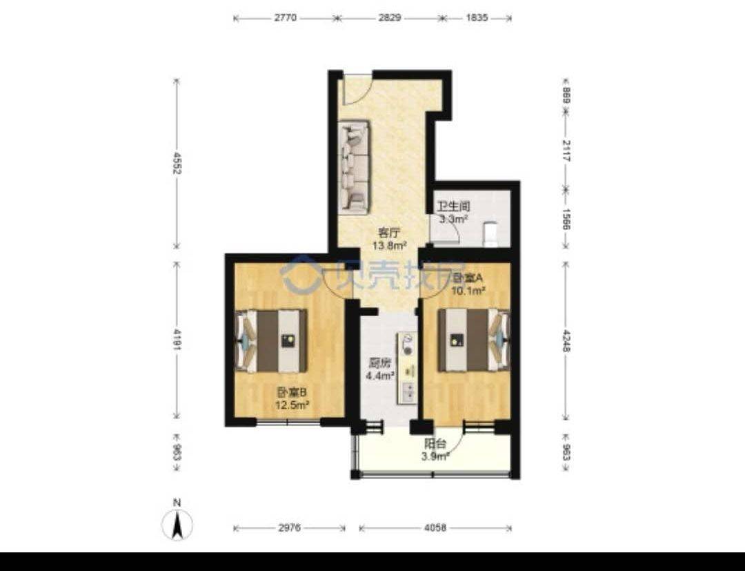 2 卧室/1 洗手间