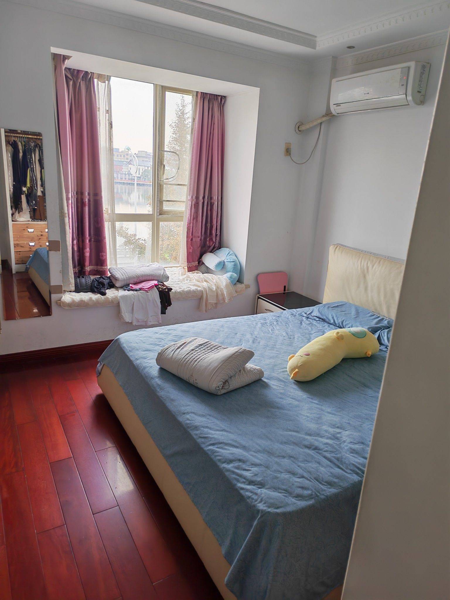 1、湖景房,小区内部环境优美,干净,绿化很好,前向湖,后向小区中心公园,里士湖有游步道,适合晨练,周边有菜场,超市等; 2、三房,三楼,客厅和卧室朝南,主卧较大,正对里士湖,可在窗前直接欣赏湖景,视野开阔,光线很好; 3、房间干净整洁,家具齐全拎包入住; 4、押一付三,民水民电 5、包物业费