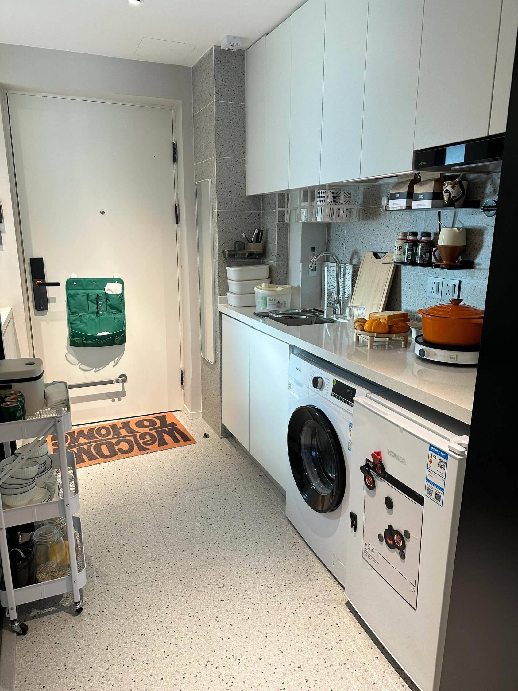 社区前台官方运营号,随时为您在线 可办居证,提取公积金,押一付一、民用水电、青年直租公寓 [项目亮点]:24小时安保服务,智能门禁系统,人脸识别进入:维修,公区保洁,物业,全都免费 [交通]:近地铁,三四分钟即达地铁口;30分钟到徐汇,人民广场,通勤市区超便利 【房问配套]冰箱,洗衣机,,空调,衣柜,书桌,椅子,密码门锁,热水,独立卫浴,明窗透光好,南北通透 [公区]:大型健身房,电梯,蓝球场,公共厨房(电磁炉,抽油烟机),露天晒衣区,菜鸟驿站,全家等 [周边配套]小区四周大型购物商圈,生活超市,水果店,菜市场,奶茶店,小吃街,饭店,酒店,医院,药店等
