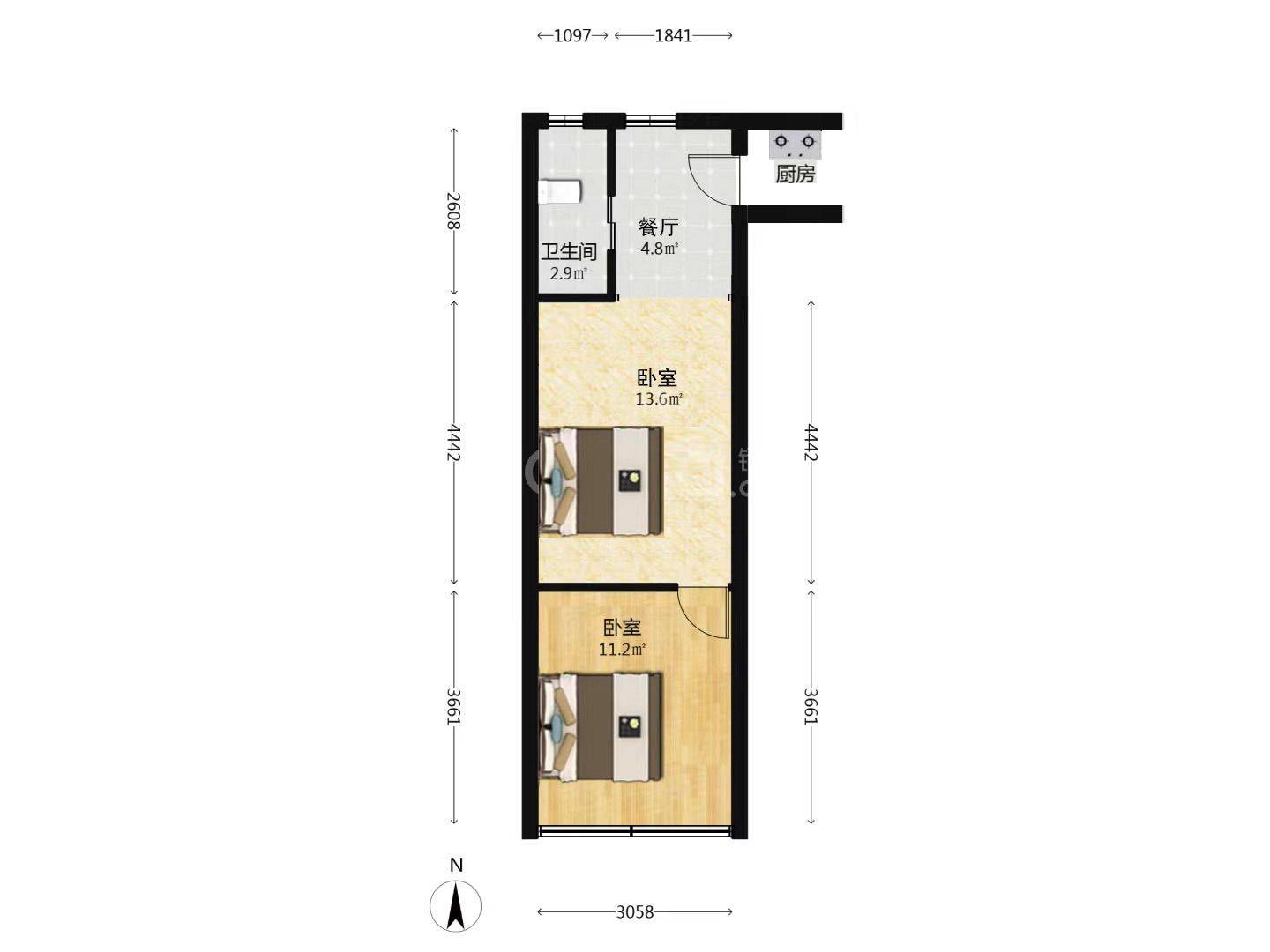 2 臥室/1 洗手間