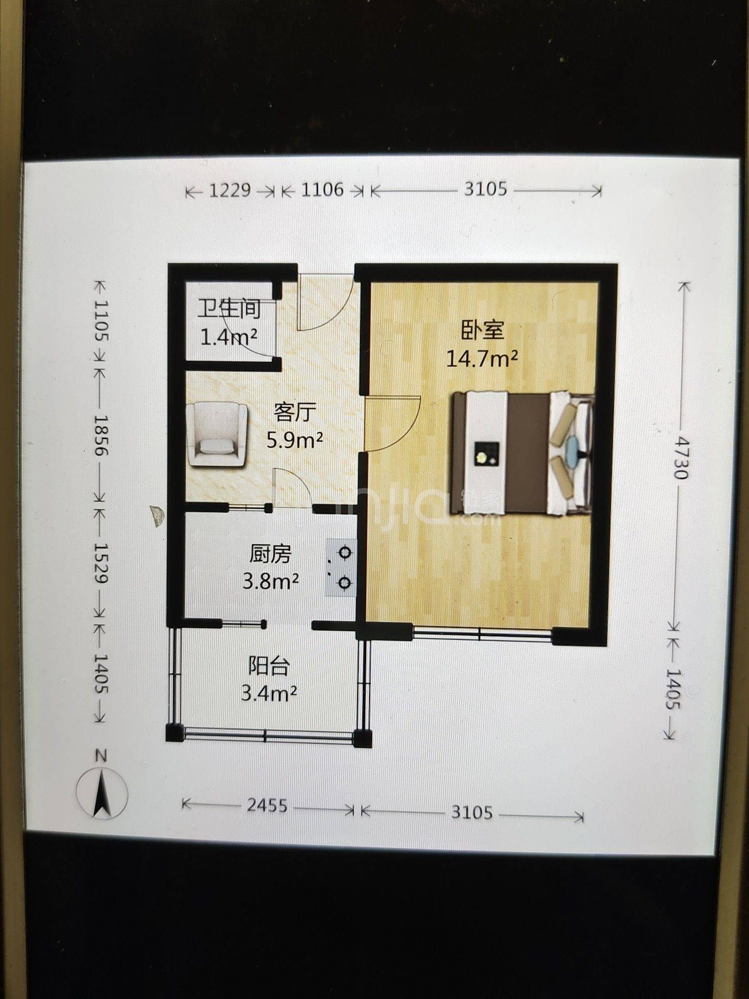 Rent : 1100RMB/M