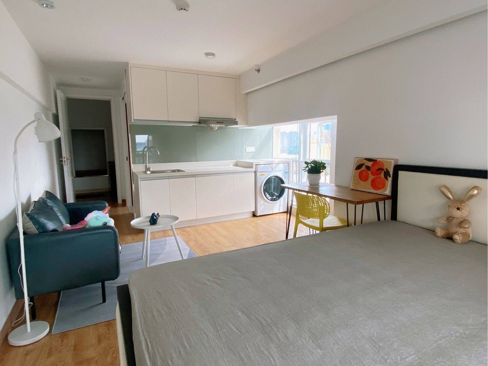 2️⃣43方,中高层,边套户型,独立厨卫,采光通风视野好,附带独立储藏室,家具家电配套齐全,🉑直接拎包入住。