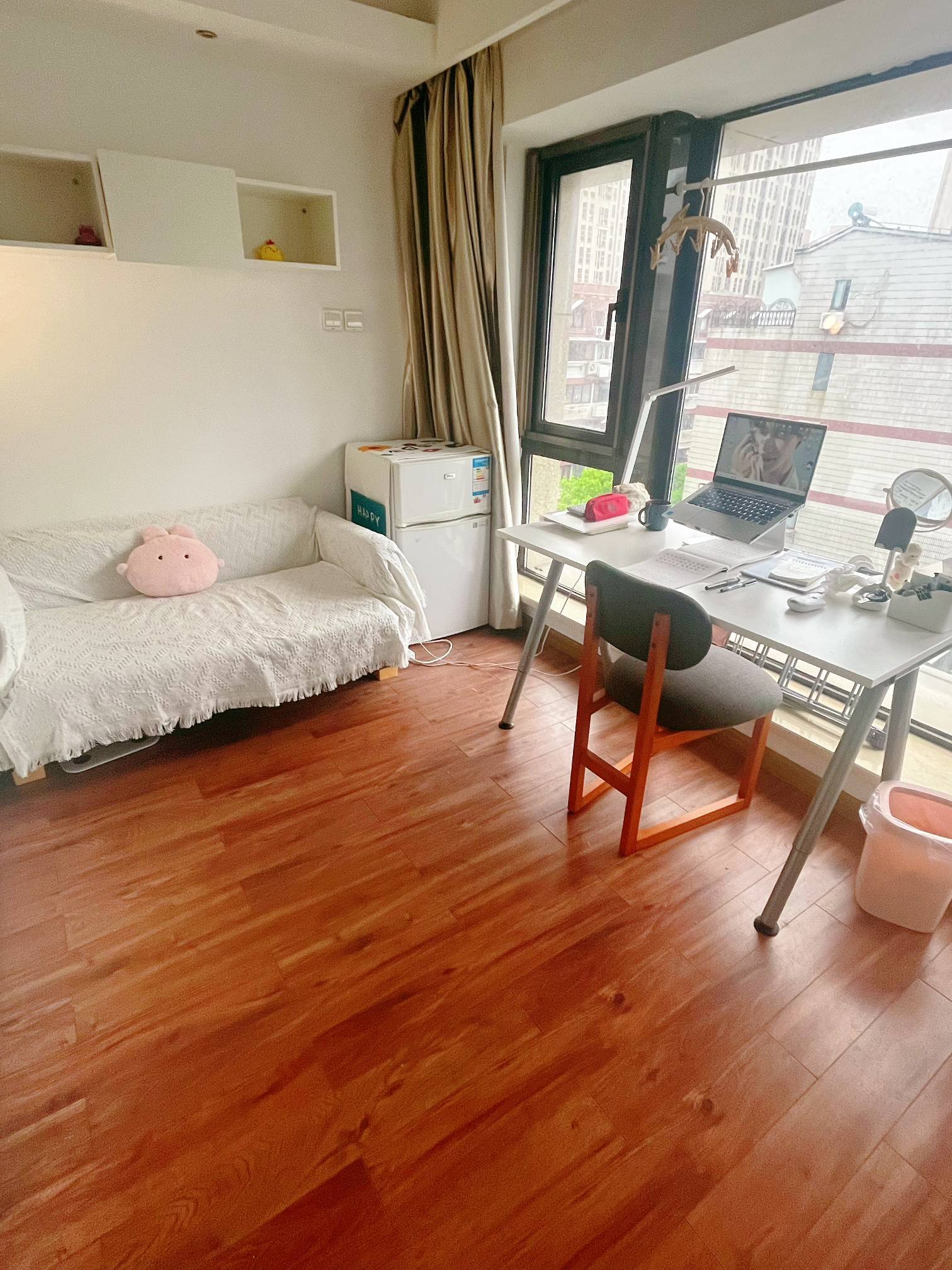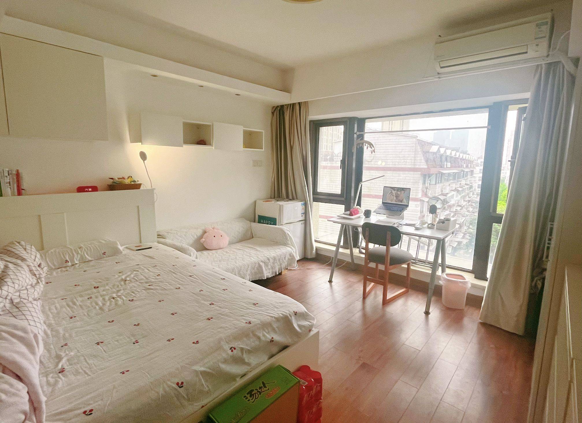 因工作变动转租,房东为个人直租,建面32平;朝东,落地窗,早晨阳光很好;房东原自住,打了很多柜子,储物空间很足;有舒适双人沙发。出门150米到地铁八号线,通勤出行十分方便;大楼有电梯,24小时保安,安全性高。商用水电。1年起租,预计11月底清空可入住。