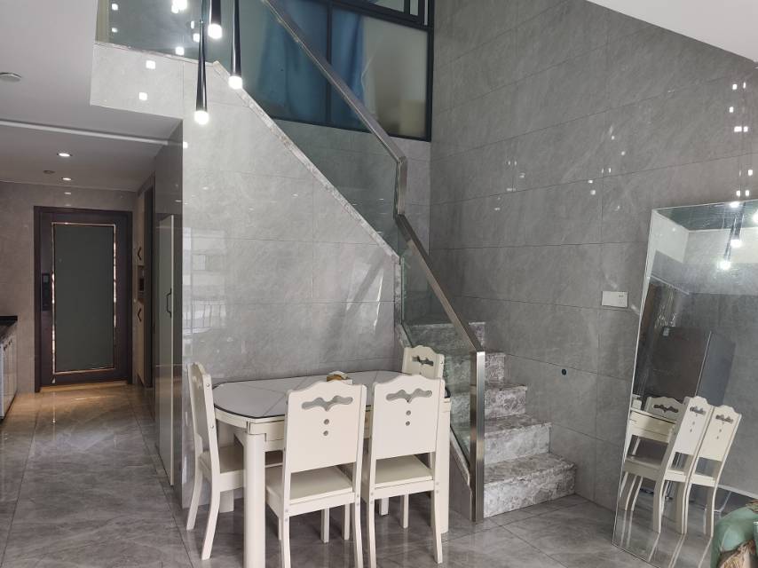 星港国际复式2房1厅出租 精装修地铁电梯房,全屋家具家电齐全 配置:洗烘一体洗衣机、空调、电视机、热水器、电磁炉双头、独立卫生间 房间朝西,采光通风好,带密码锁 地铁房,生活便利,交通出行方便